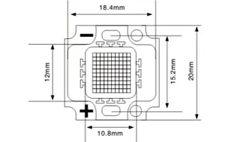 Мощный светодиод типа COB, размер 18.4×20 мм. Чипы USA Bridgelux 23x45mil. Цвет свечения теплый (3000-3200 К). Угол излучения 120°. Световой поток 900-1000 лм при If=700 мА, P=8 Вт. VF=12-13.6 В. CRI>70. Для использования с солнечными батареями.