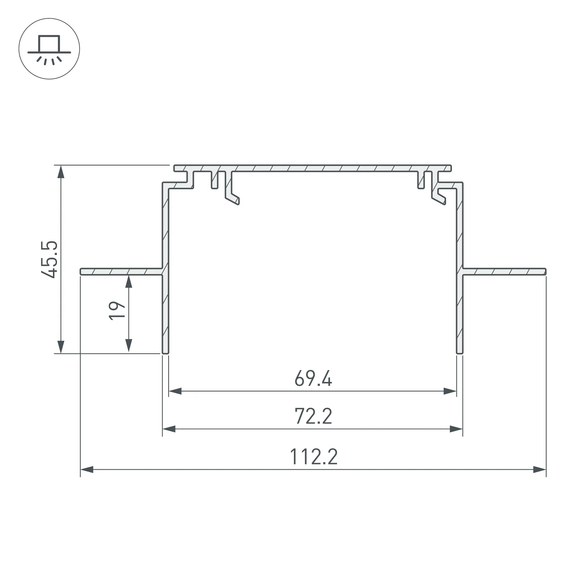 Поставка под заказ от 20 м. Алюминиевый профиль-держатель для встраивания в гипсокартон толщиной 16 мм. Можно установить профиль POWER-RW70F(-S) при помощи арт. 019880 Скоба для TEK-POWER (отдельно) из расчета 4шт на 1м профиля. Габаритные размеры (L×W×H): 2000x112,2x45,5 мм. Паз для установки 72.2 мм. Заглушки и другие аксессуары приобретаются отдельно. Цена за 1 метр.