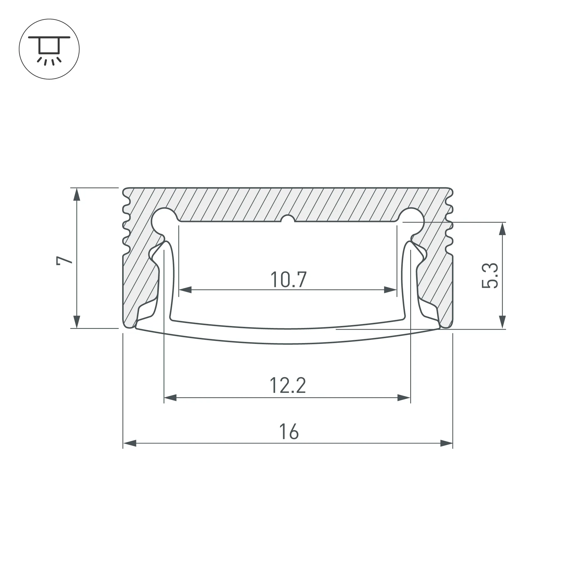 Алюминиевый анодированный профиль для светодиодных лент и линеек. Габаритные размеры (L×W×H): 2000x16x7 мм. Ширина площадки для ленты 10,7 мм. Экраны, заглушки и другие аксессуары приобретаются отдельно. Цена за 1 метр.