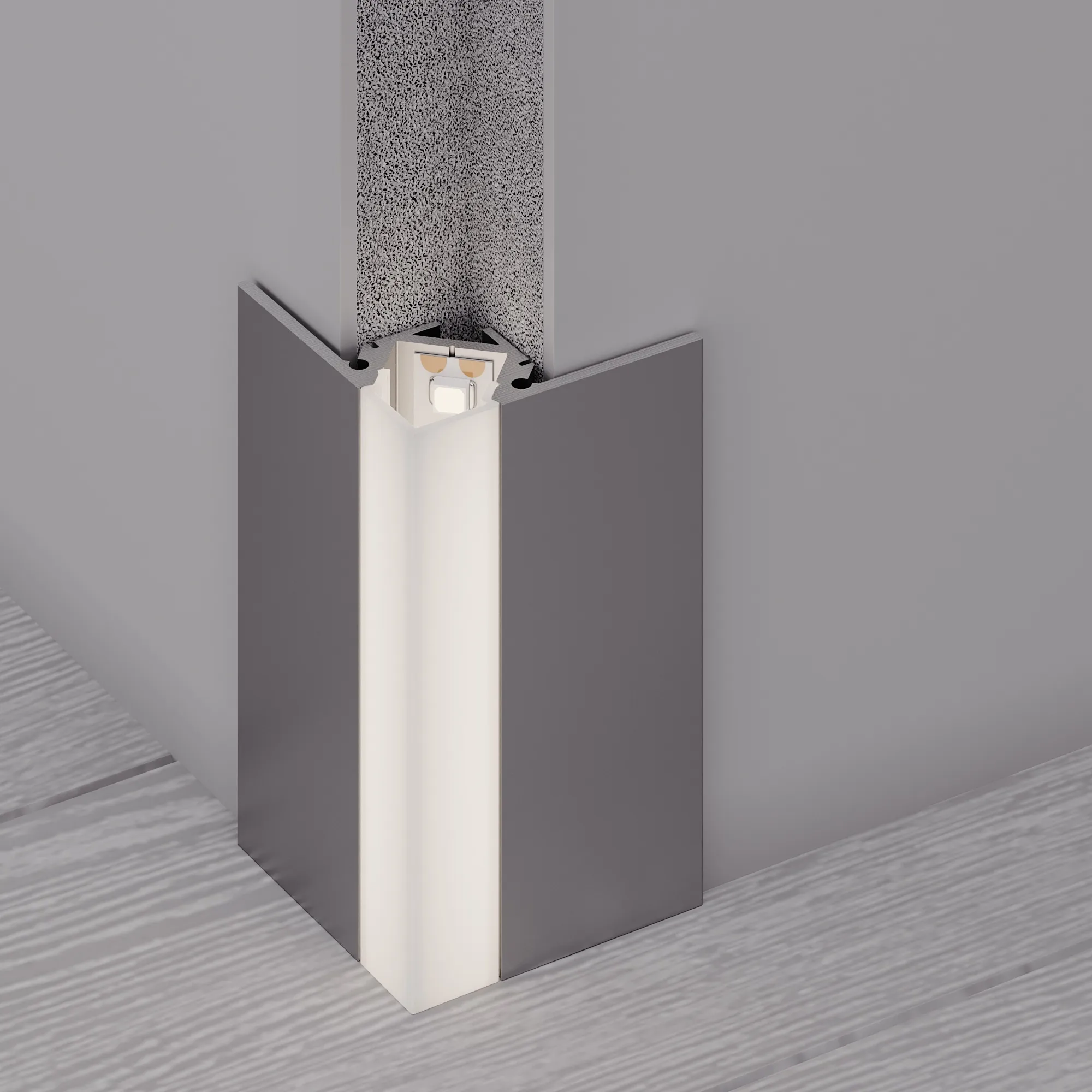 Алюминиевый анодированный угловой профиль для светодиодных лент и линеек, под строительную отделку.Декоративная контурная подсветка внешних углов стен и конструкций. Габаритные размеры (L×W×H): 2000x50,8x21 мм. Ширина площадки для ленты 12 мм. Экраны, заглушки и другие аксессуары приобретаются отдельно. Цена за 1 метр.
