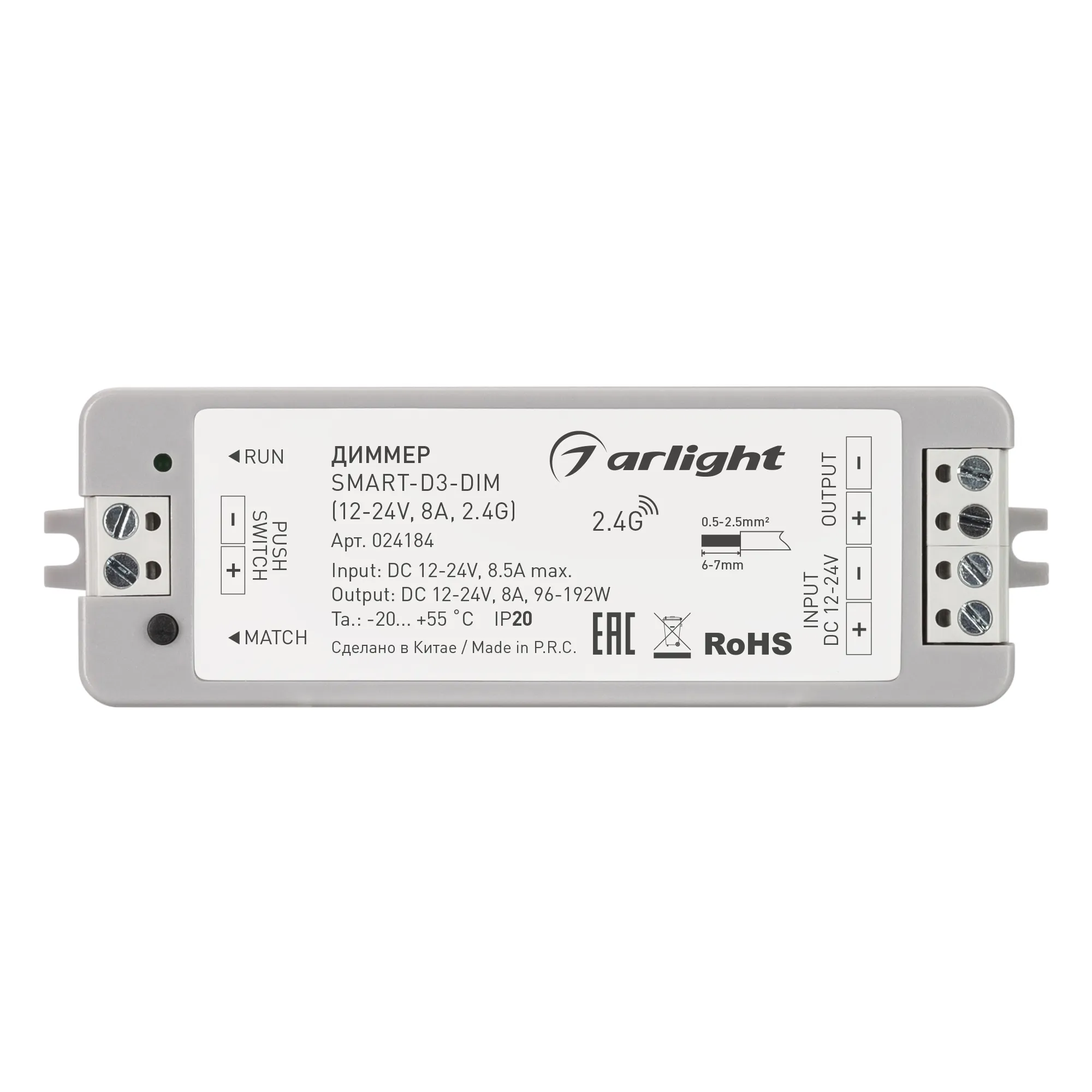 В магазине Arled Market Вы можете купить "Диммер SMART-D3-DIM (12-24V, 8A, 2.4G) (Arlight, IP20 Пластик, 5 лет)"