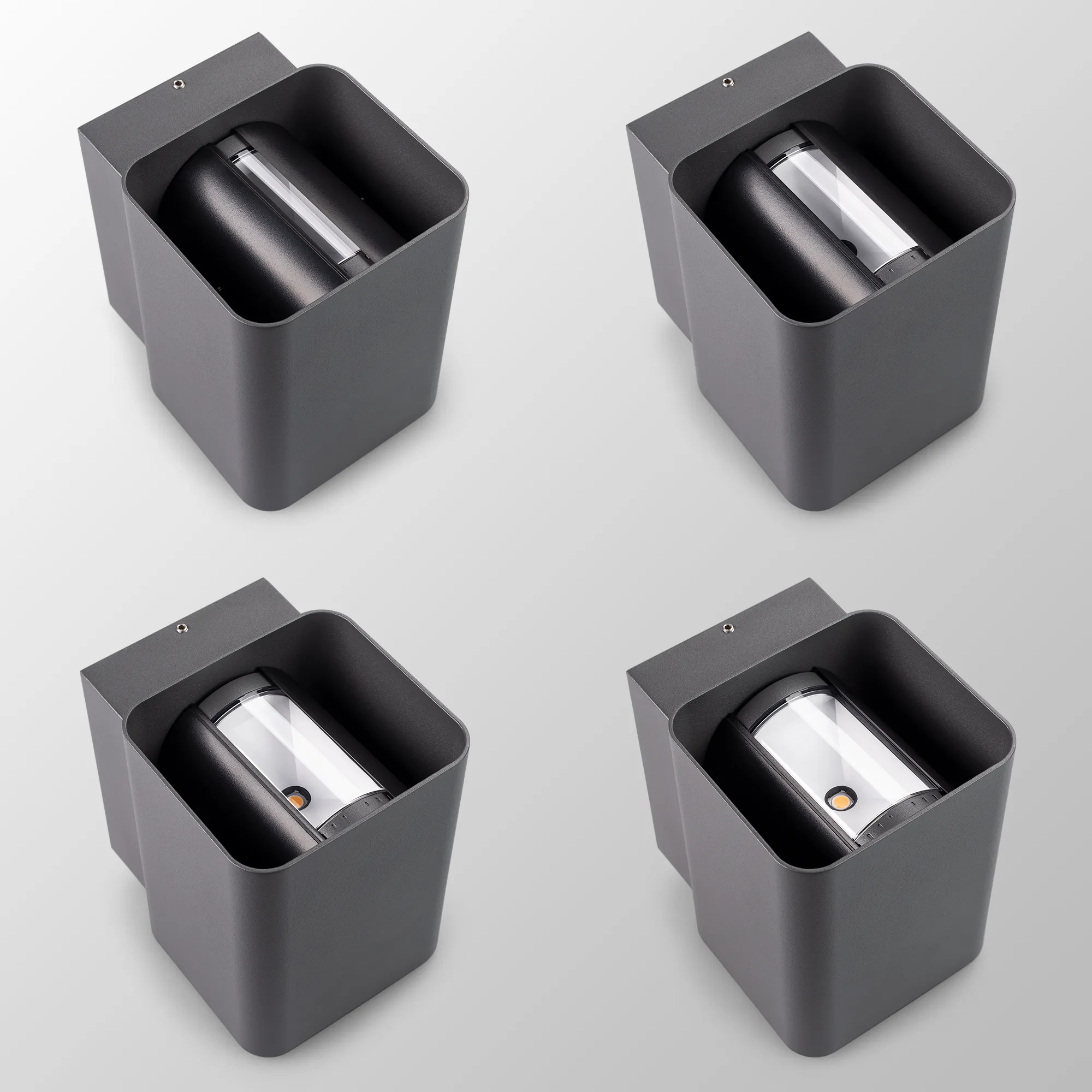 Уличный светодиодный светильник для стен, изменяемый угол освещения 0°-80°, свет вверх-вниз на 2 стороны. Цвет ТЕПЛЫЙ БЕЛЫЙ 3000К, светодиоды 2x6Вт CREE (750 лм). Влагозащищенный корпус IP54 - белый (RAL9003) алюминий, экран ударопрочный PC. Питание 230В, мощность 12 Вт. Размеры ВхШхГ -138х104х129 мм.