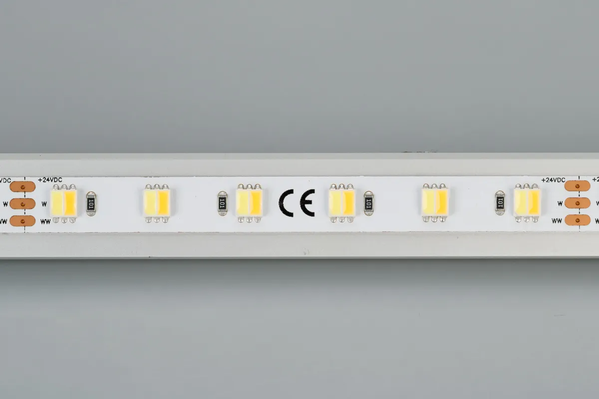 2-х канальная лента LUX с изменяемой цв.температурой, светодиоды smd 5060, 60шт/м (300шт на 5м), белая плата 10мм, скотч 3М. Два цвета БЕЛЫЙ 6500K + ТЁПЛЫЙ 3000K. Угол 120°, цветопередача CRI>80. Питание 24V, мощность 14,4 Вт/м (72 Вт на 5м). Размеры 5000х10х2,2мм. Мин.отрезок 100мм, 6 светодиодов. Цена за 1м.
