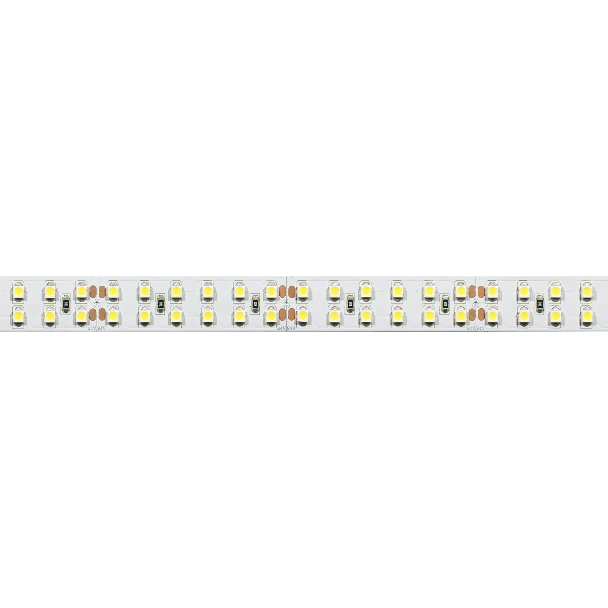 Широкая гибкая лента LUX, светодиоды 2x2 (2 ряда) smd 3528, 240шт/м (1200шт на 5м), белая плата 15мм, скотч 3М. Цвет БЕЛЫЙ 5800-6500K. Питание 24В, мощность 19,2 Вт/м (96 Вт на 5м), угол 120°. Размеры 5000x15x2,4мм. Мин.отрезок 50мм (12 LED). Цена за 1м.
