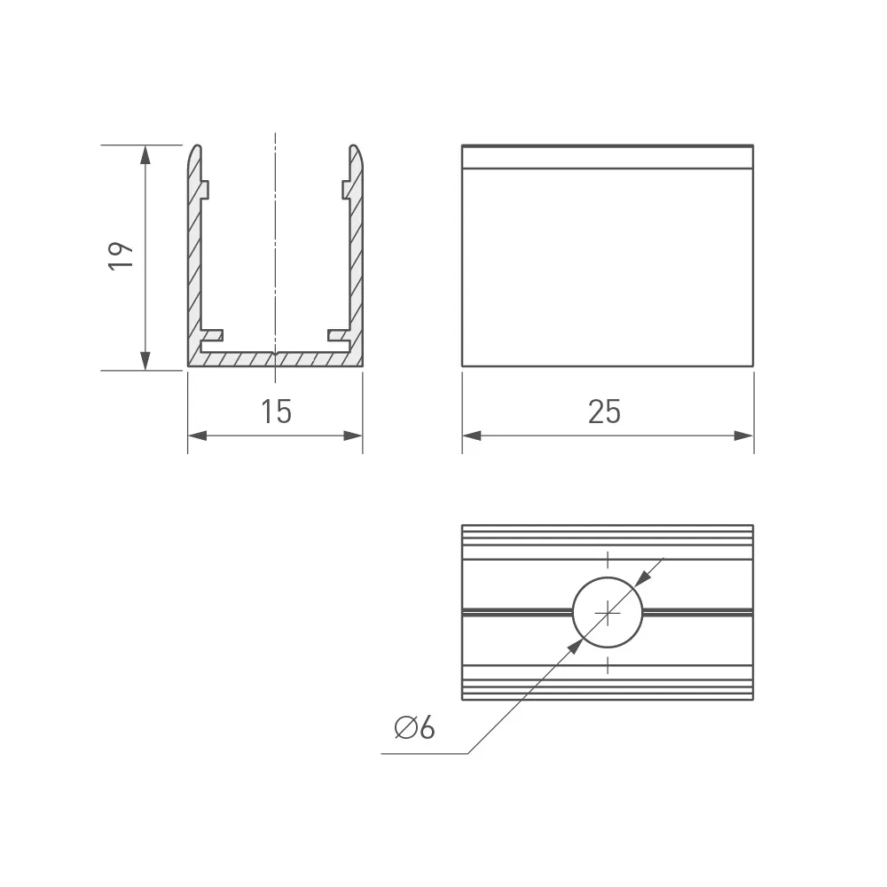 Клипса из анодированного алюминия для гибкого неона MOONLIGHT сечения 17х12мм. Длина 25 мм.