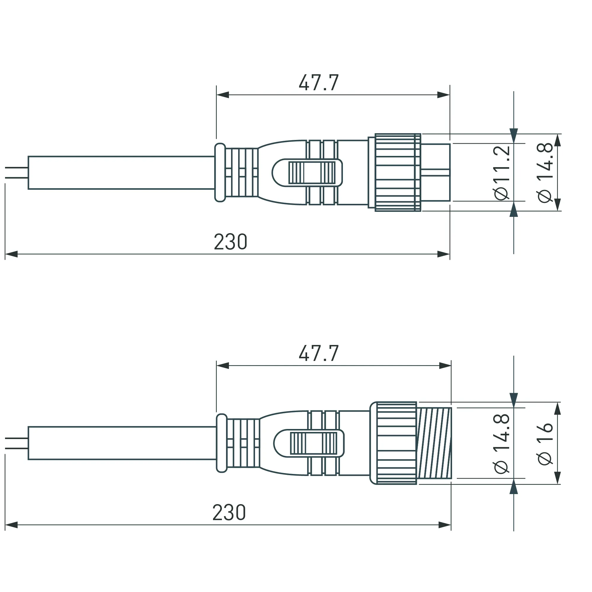 Коннектор для управления светодиодными прожекторами серии LINE с помощью протокола DMX512. Габариты разъёма DxH - Ø18х48мм, длина разъёма с проводом L=230мм.