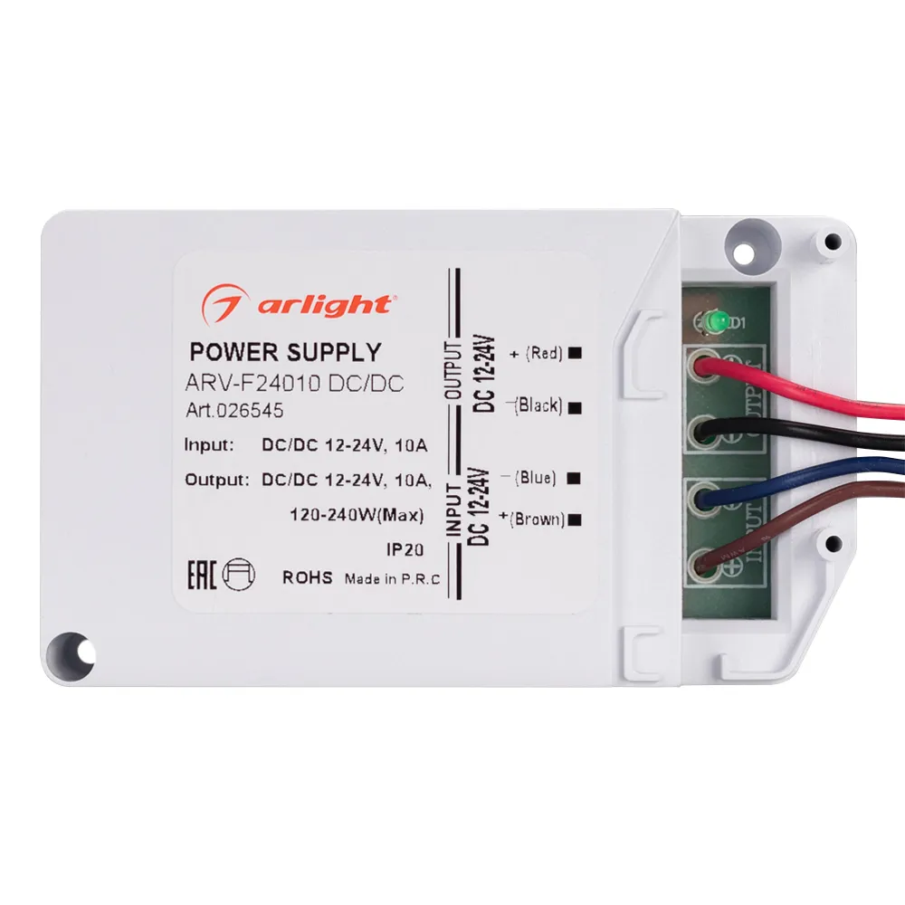 В магазине Arled Market Вы можете купить "Блок питания ARV-F24010 DC/DC (12-24V, 10A, фильтр ШИМ) (Arlight, Пластик)"