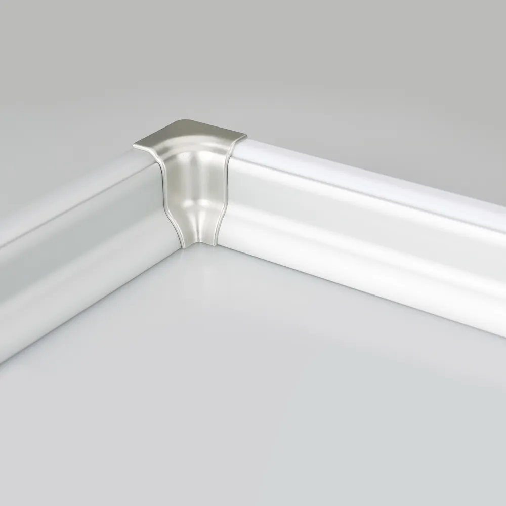 Соединитель внутренний для профиля ARH-PLINTUS. Материал пластик, серебристый.