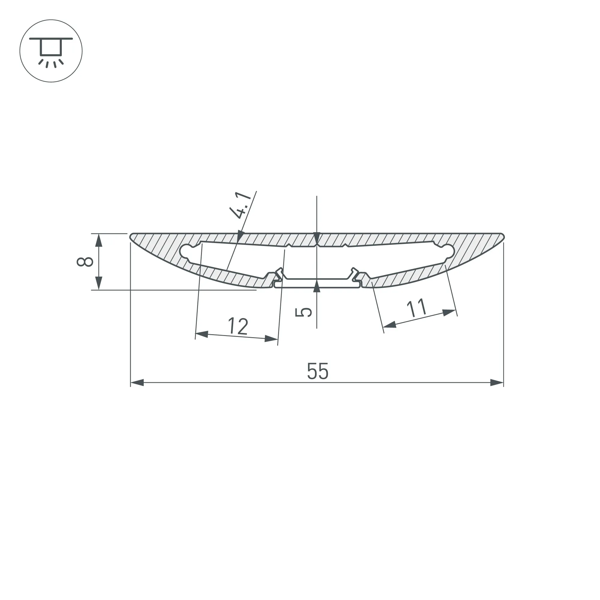 Алюминиевый анодированный профиль для светодиодных лент и линеек (2 по 10 мм). Ленты устанавливаются под алюминиевую часть профиля, по бокам от экрана, что обеспечивает мягкий свет. Габаритные размеры (L×W×H): 2000x54,9x8 мм. Ширина площадки для ленты 33,4 мм, рекомендуется устанавливать ленту шириной 10 мм в два ряда. Экраны, заглушки и другие аксессуары приобретаются отдельно. Цена за 1 метр.