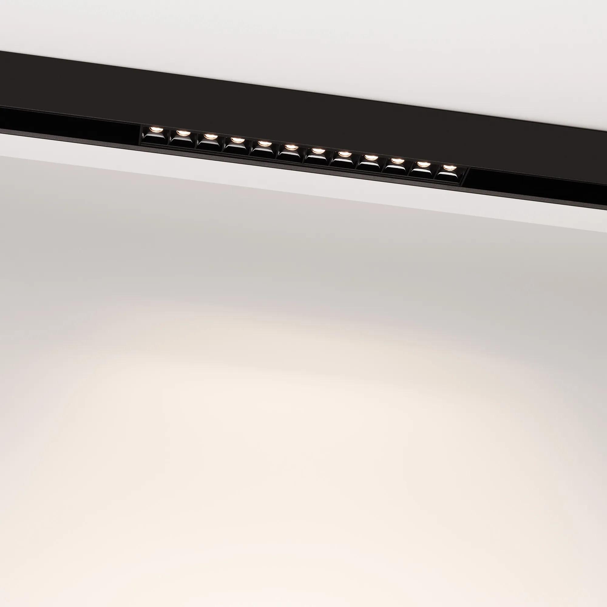 Светильник для магнитных треков шириной 45мм, 12Вт. Цвет свечения ДНЕВНОЙ 4000K, световой поток 890лм, угол 15°, CRI>90. Корпус прямоугольный, металл, цвет черный, IP20. Размеры LxWxH 322x35x43мм. Входное напряжение DC24V, мощность 12Вт. Драйвер DС24V/AC230V поставляется отдельно. Диммируется только с 026407(1), 027633.