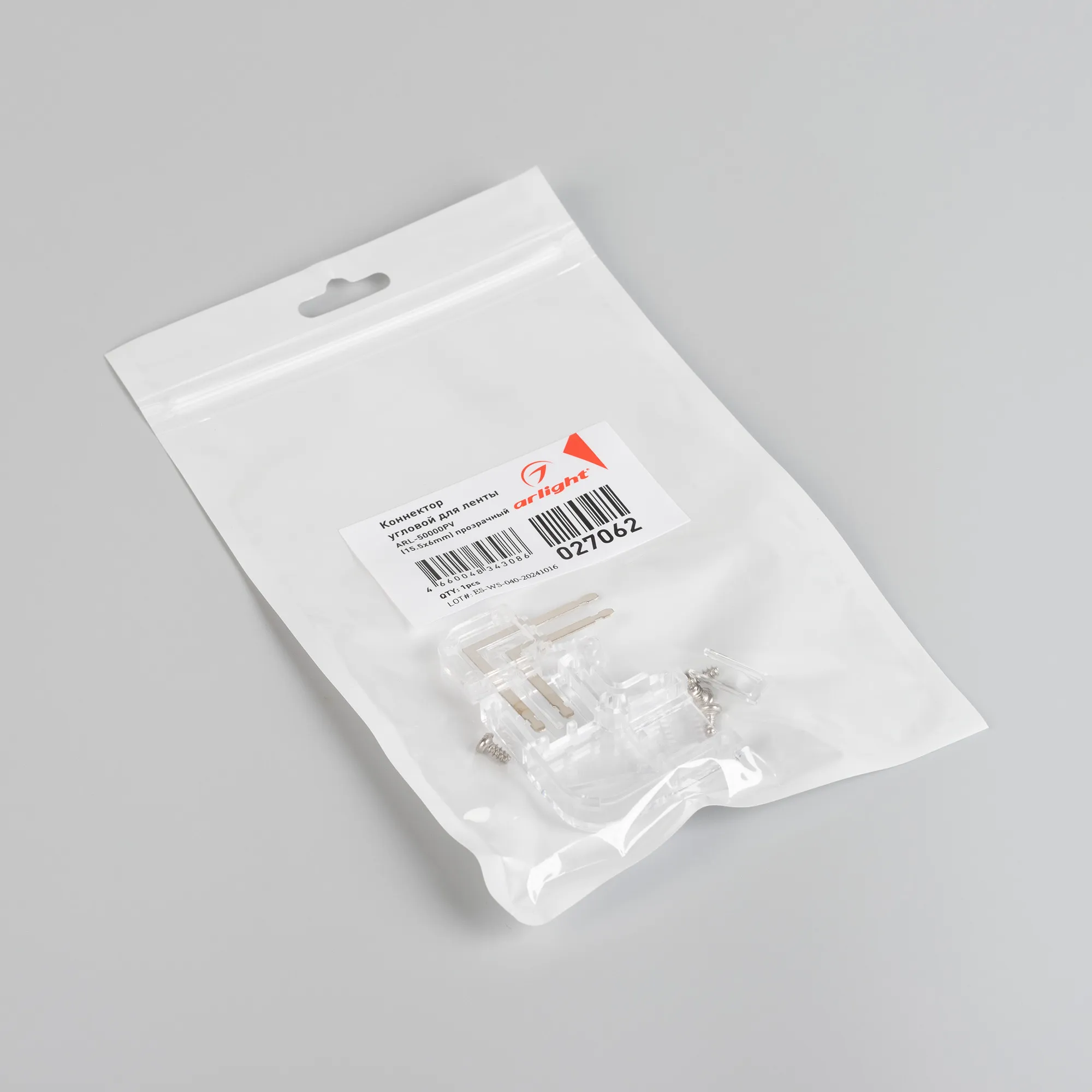 Коннектор угловой для соединения ленты ARL-50000PV (15.5x6mm, тип WP2) под углом 90 градусов. Материал - прозрачный пластик PC.