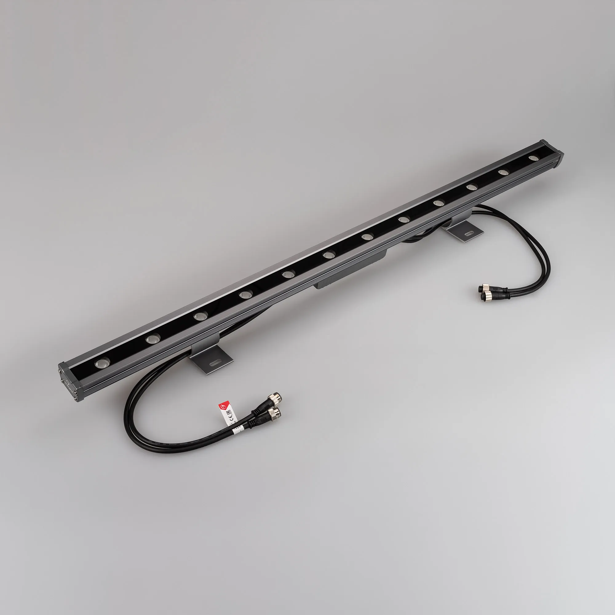 Поставка под заказ от 30 шт. Линейный светодиодный прожектор "WALLWASHER. Мощность 48W, напряжение питания DC 24V. Количество светодиодов 12 штук. Цвет светодиодов RGB-Warm(3000K) (4 кристалла в каждом светодиоде), управление по протоколу DMX512, угол рассеивания 15x45°. Корпус: алюминиевый сплав и армированное стекло. Цвет корпуса серый, степень влагозащиты IP65. Габариты 1000x54x35мм.