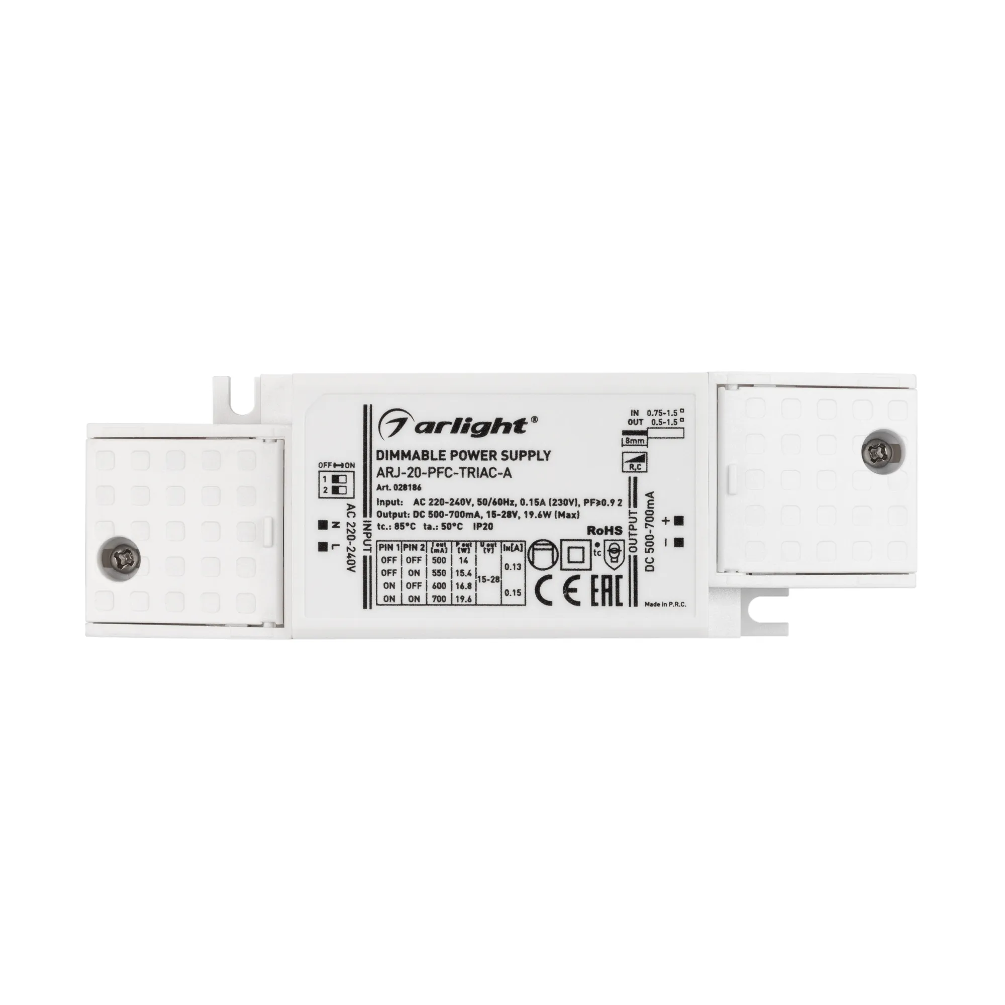 Блок питания ARJ-20-PFC-TRIAC-A (20W, 500-700mA) (Arlight, IP20 Пластик, 5 лет)
