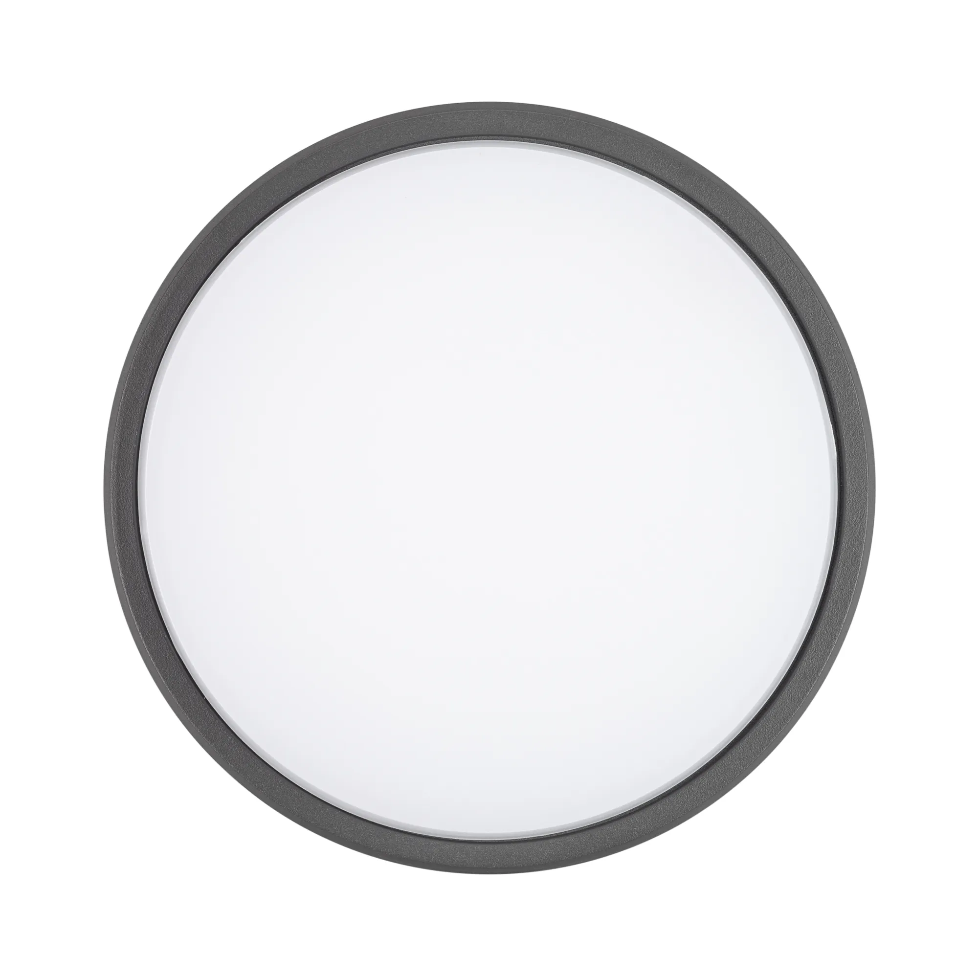 Накладной светильник 10Вт, серый алюминиевый корпус, матовый рассеиватель из поликарбоната. Цвет ТЕПЛЫЙ БЕЛЫЙ 3000K, св.поток 980лм, CRI(Ra)>80, угол 110°. Размер Ф175x45мм. IP54. Питание AC220-240V, 10Вт, встроенный драйвер.