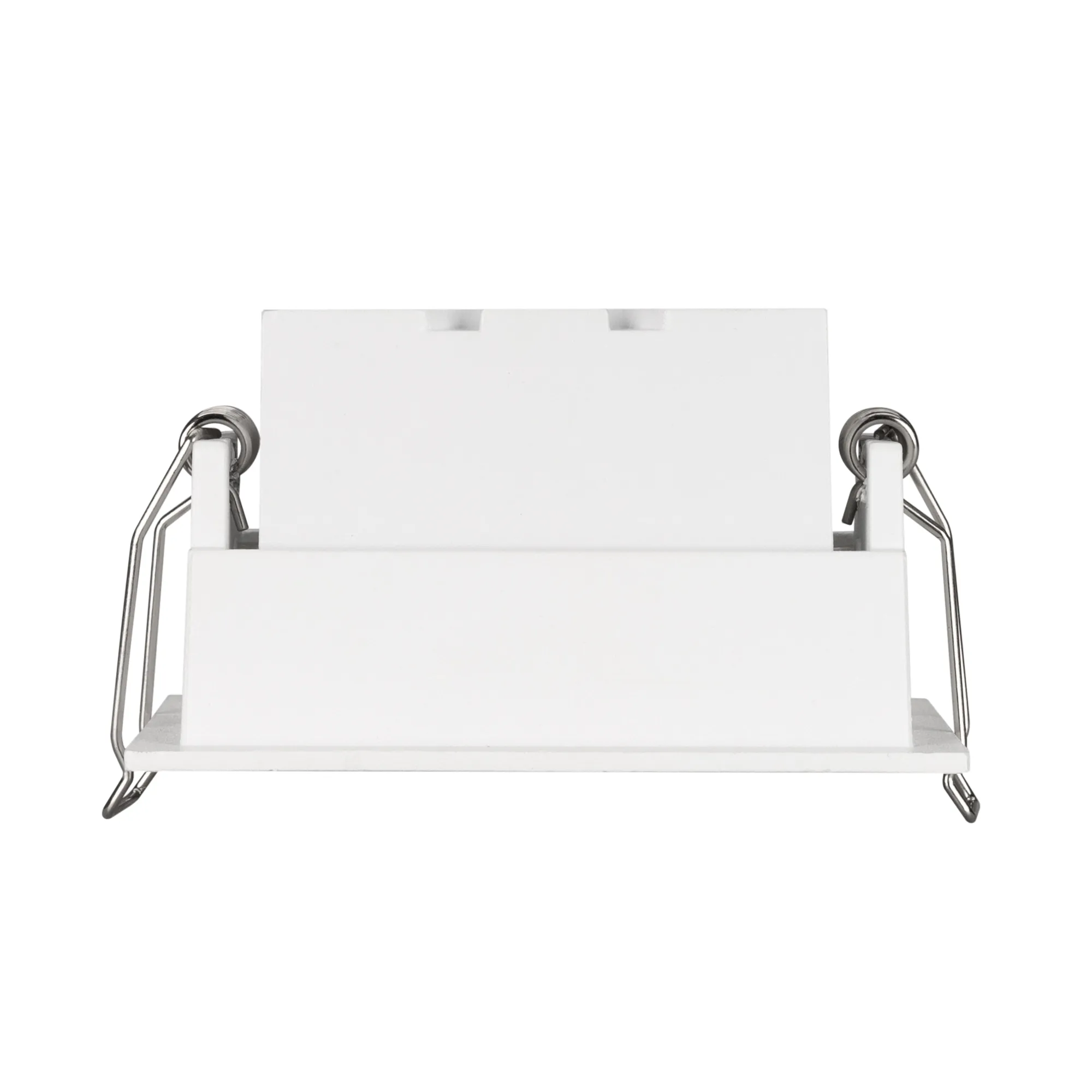 Встраиваемый поворотный светильник. Мощность 5 Вт, св. поток 375 лм, 75 лм/Вт, дневной 4000 K, CRI>98, угол 30°, напряжение питания 230 В. Белый прямоугольный корпус из алюминия, экран PMMA, степень защиты IP20. Размер: длина 90 мм, ширина 67 мм, высота 50 мм. Монтаж встраиваемый, установочное отверстие длина 85 мм, ширина 60 мм. Драйвер 3-9 В, 700 мА, пульсация <1%.