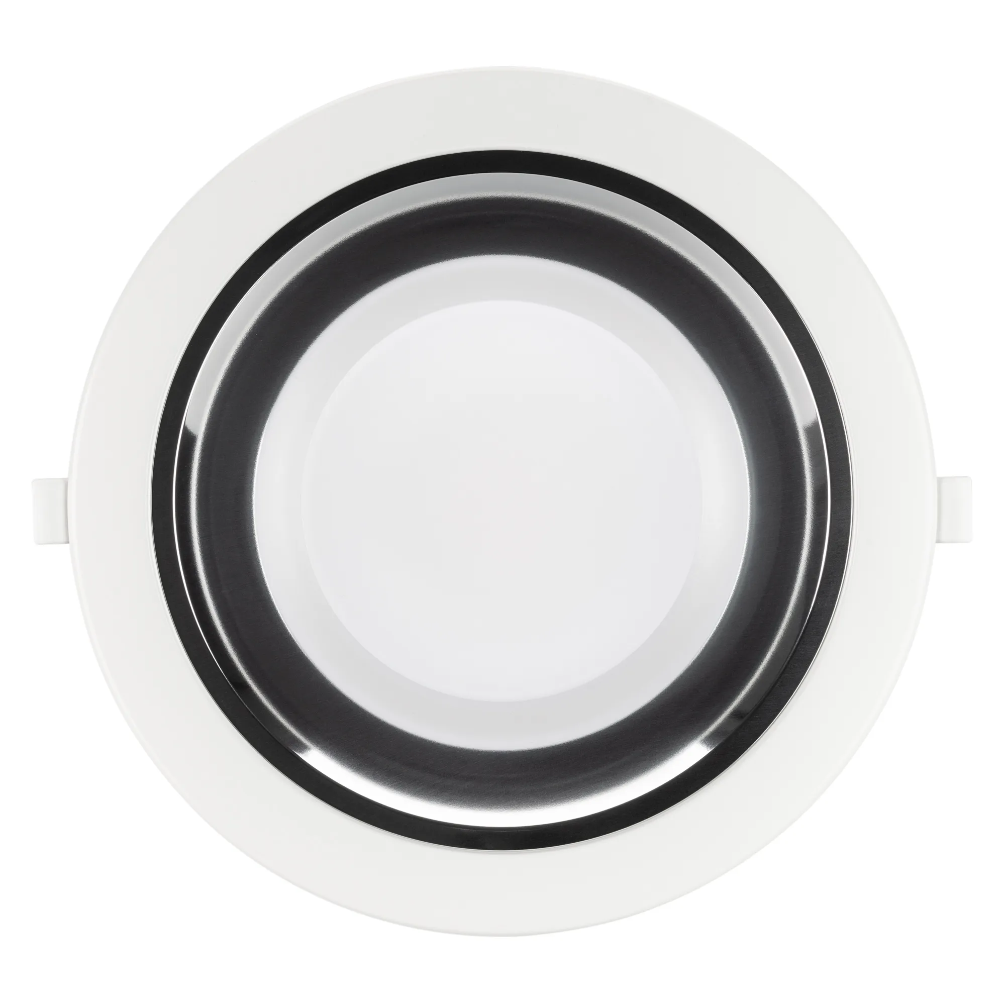 Светильник даунлайт с изменяемой цветовой температурой и переключателем на корпусе. Мощность 35 Вт, св. поток 4038-4230 лм, 106 лм/Вт, белый 6000К, или дневной 4000К, или теплый 3000К (выбор цвета свечения при установке, фиксированный), CRI>80, угол 80°, напряжение питания 230 В. Белый круглый корпус из алюминия, степень защиты IP20. Размер: диаметр 232 мм, высота 83 мм. Монтаж встраиваемый, установочное отверстие: диаметр 195-210 мм. Драйвер 26,5-44,5 В, 900 мА, пульсация <0,7%.