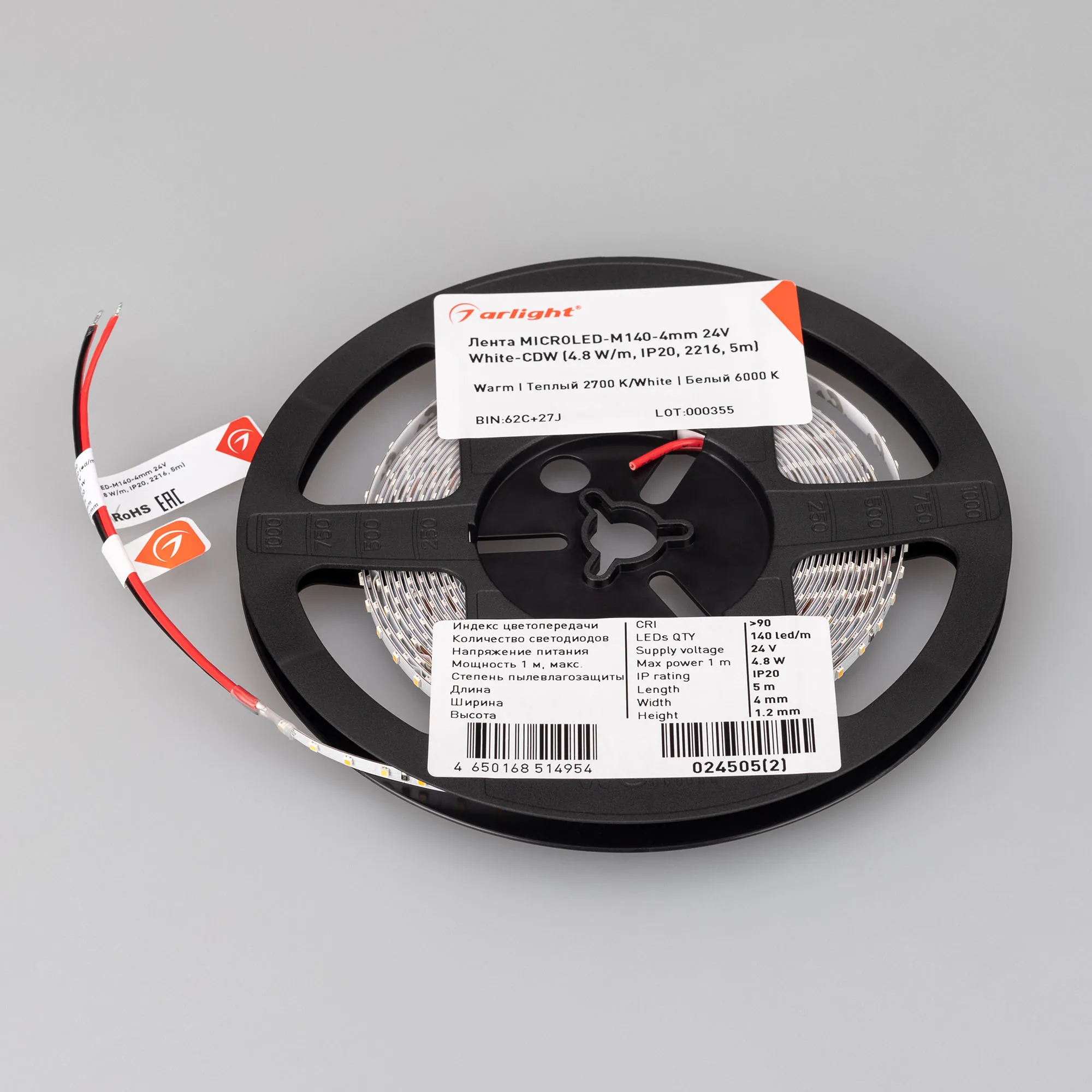 Биполярная узкая светодиодная лента MICROLED серии M140 с изменяемым цветом свечения. Светодиоды SMD 2216, 140 шт/м, белая плата шириной 4 мм, скотч 3M. Цвет БЕЛЫЙ 6000K + ТЕПЛЫЙ 2700K, индекс цветопередачи CRI>90, угол 120°. Питание 24 В, мощность 4.8 Вт/м (24 Вт на 5 м). Размеры 5000x4x1.2 мм. Мин. отрезок 100 мм, 14 светодиодов. Цена за 1 м.