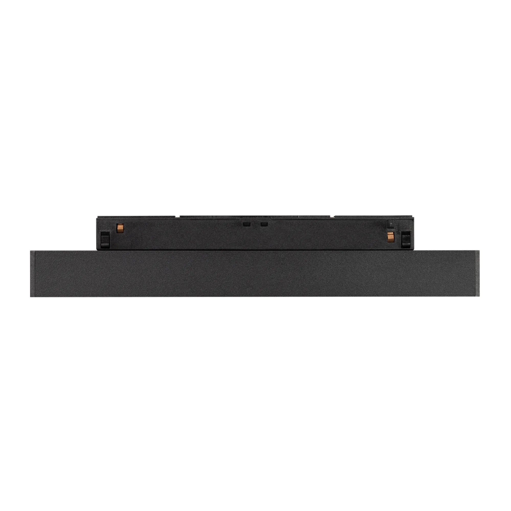 Светильник для магнитных треков MAG-ORIENT шириной 26 мм. Мощность 8 Вт, св. поток 440 лм, 55 лм/Вт, теплый 3000 K, CRI>90, угол24°, напряжение питания 48 В. Черный прямоугольный корпус из металла, экран поликарбонат, степень защиты IP20. Размер: длина 235 мм, ширина 22 мм, высота 42 мм. Монтаж на трек MAG-ORIENT. Пульсация <1%.