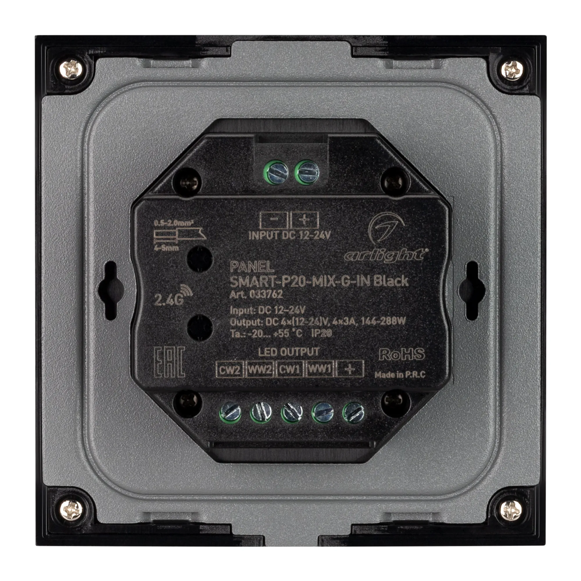 Панель SMART-P20-MIX-G-IN Black (12-24V, 4x3A, Rotary, 2.4G) (Arlight, IP20 Пластик, 5 лет)