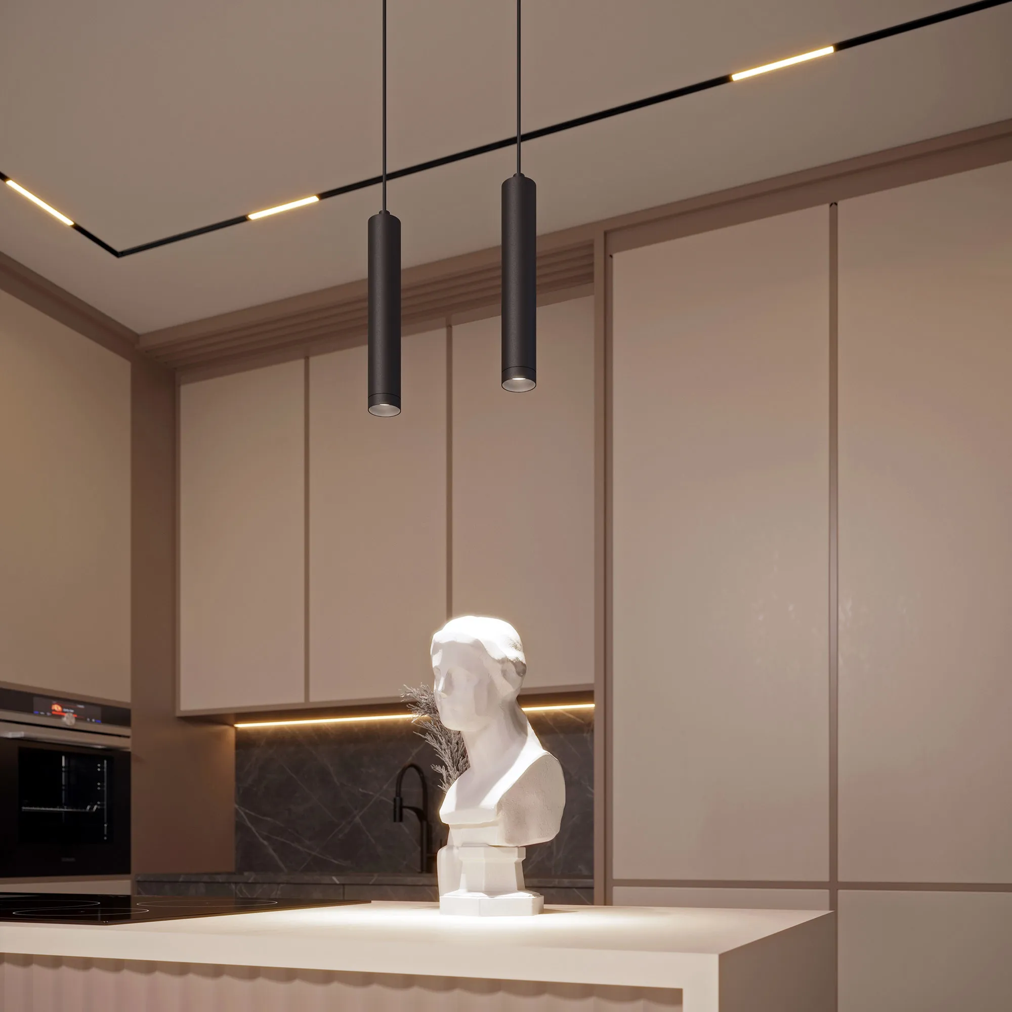 Светильник для магнитных треков MAG-ORIENT шириной 26 мм с управлением DALI. Мощность 12 Вт, св. поток 895 лм, 75 лм/Вт, теплый 3000 K, CRI>90, угол 24°, напряжение питания 48 В. Черный цилиндрический корпус из металл, степень защиты IP20. Размер: длина 204 мм, ширина 23 мм, высота 1518 мм, высота подвеса 1250мм. Размер светоизлучающего модуля: 45*250 мм. Монтаж на трек MAG-ORIENT. Пульсация <1%. UGR<16. Подвес регулируется.