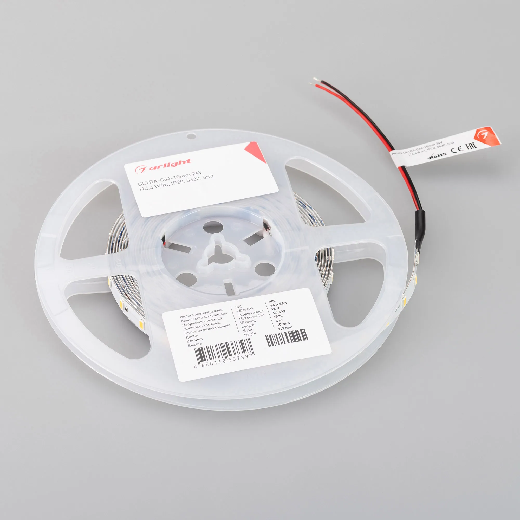 В магазине Arled Market Вы можете купить "Лента светодиодная ULTRA-C64-10mm 24V Warm3000 (14.4 W/m, IP20, 5630, 5m) (Arlight, высок.эфф.160 лм/Вт)"