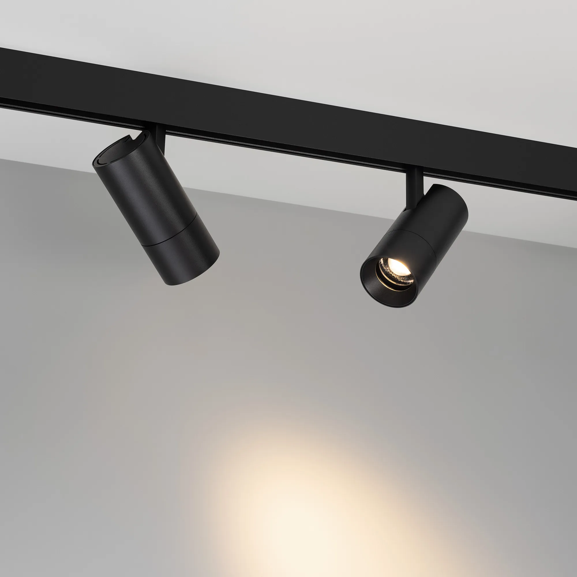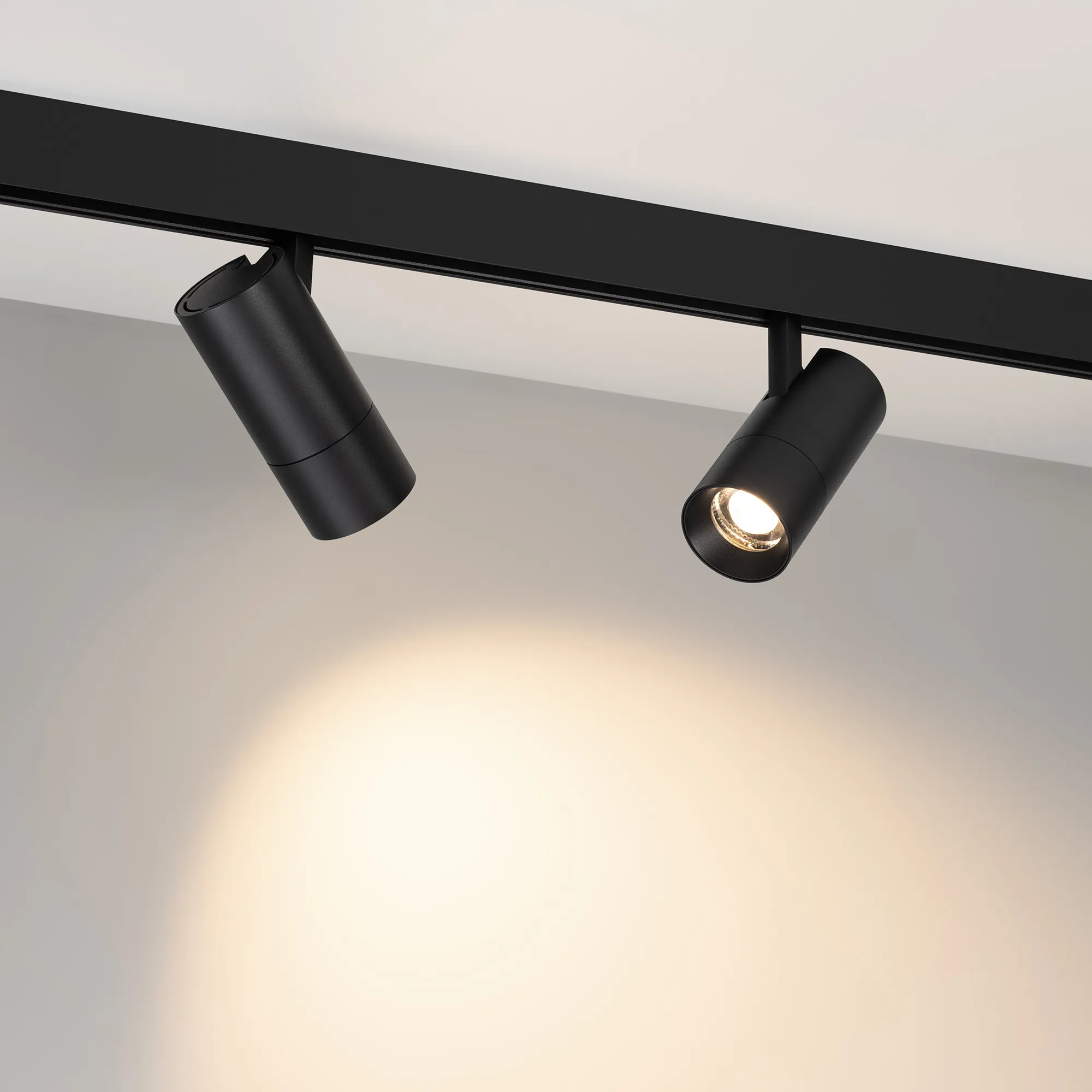 Светильник для магнитных треков MAG-ORIENT шириной 26 мм. Мощность 15 Вт, св. поток 1100 лм, 73 лм/Вт, дневной 4000 K, CRI>94, угол 34-60°, напряжение питания 48 В. Черный фигурный корпус из металл, экран поликарбонат, степень защиты IP20. Размеры LxWxH 204x66x211 мм.