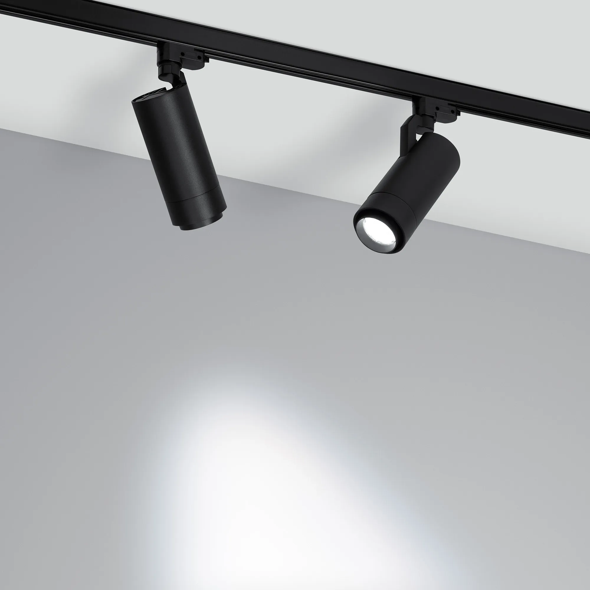 Светильник для треков/шин 4 провода, 20Вт. Цвет свечения меняется в диапазоне 3000К-6000К (возможность изменения цветовой температуры при помощи диммера DALI), световой поток 1500 лм, 74 лм/Вт, регулируемый угол 20-60°, CRI>90. Корпус круглый, металл, цвет черный, IP20. Размеры DxL Ø80x1816мм.. Входное напряжение AC220-240V, мощность 20Вт. Драйвер встроенный 12-54 В, 500 мА. Совместим только с шинопроводом серии С.