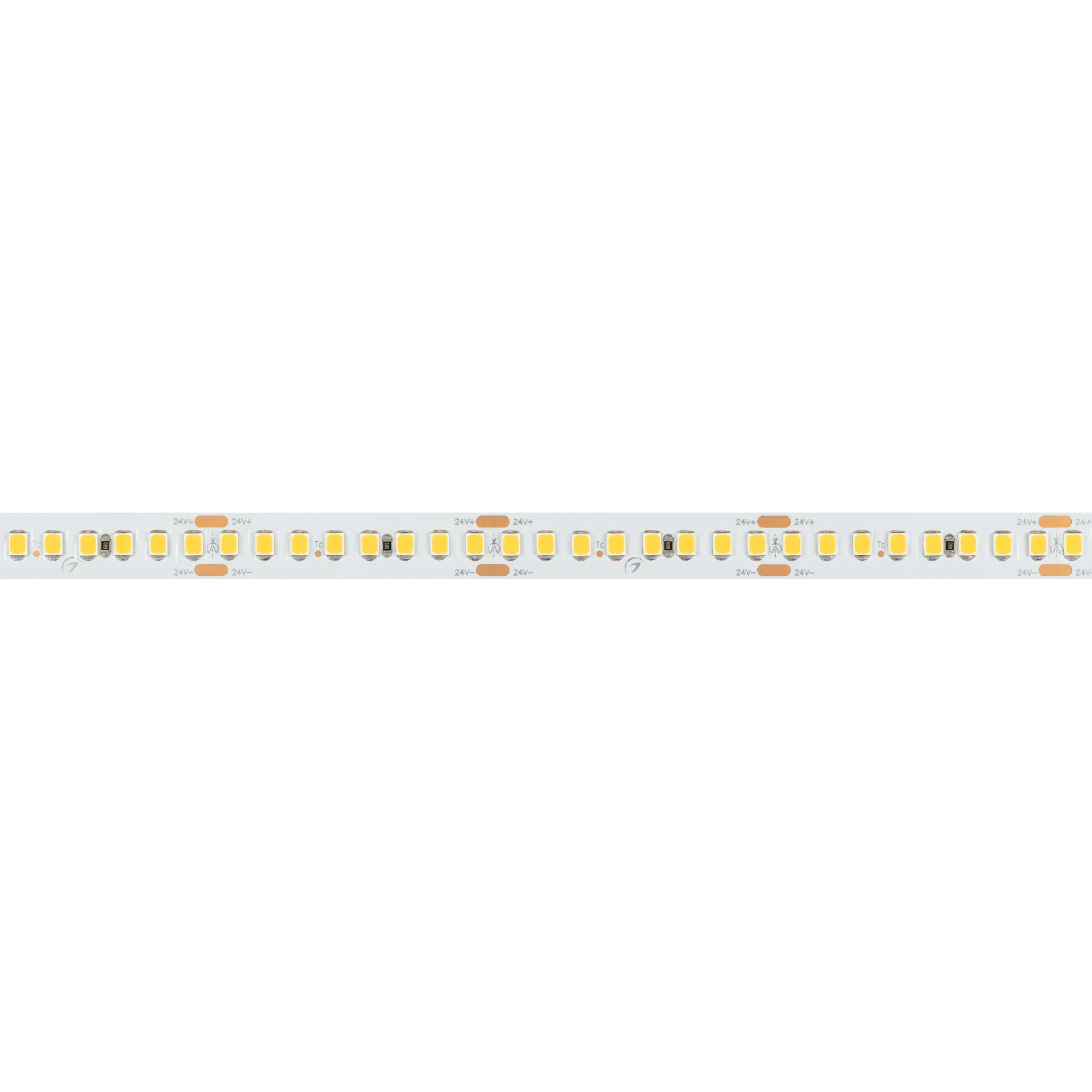 Светодиодная высокоэффективная лента RT серии A192. Светодиоды SMD 2835, 192 шт/м, белая плата шириной 10 мм, скотч 3M. Цвет ДНЕВНОЙ 5000K, высокая световая эффективность 150 лм/Вт, индекс цветопередачи CRI>85, угол 120°. Питание 24 В, мощность 17.6 Вт/м (88 Вт на 5 м). Размеры 5000x10x1.6 мм. Мин. отрезок 41.67 мм, 8 светодиодов. Цена за 1 м. Обязательна установка на профиль.