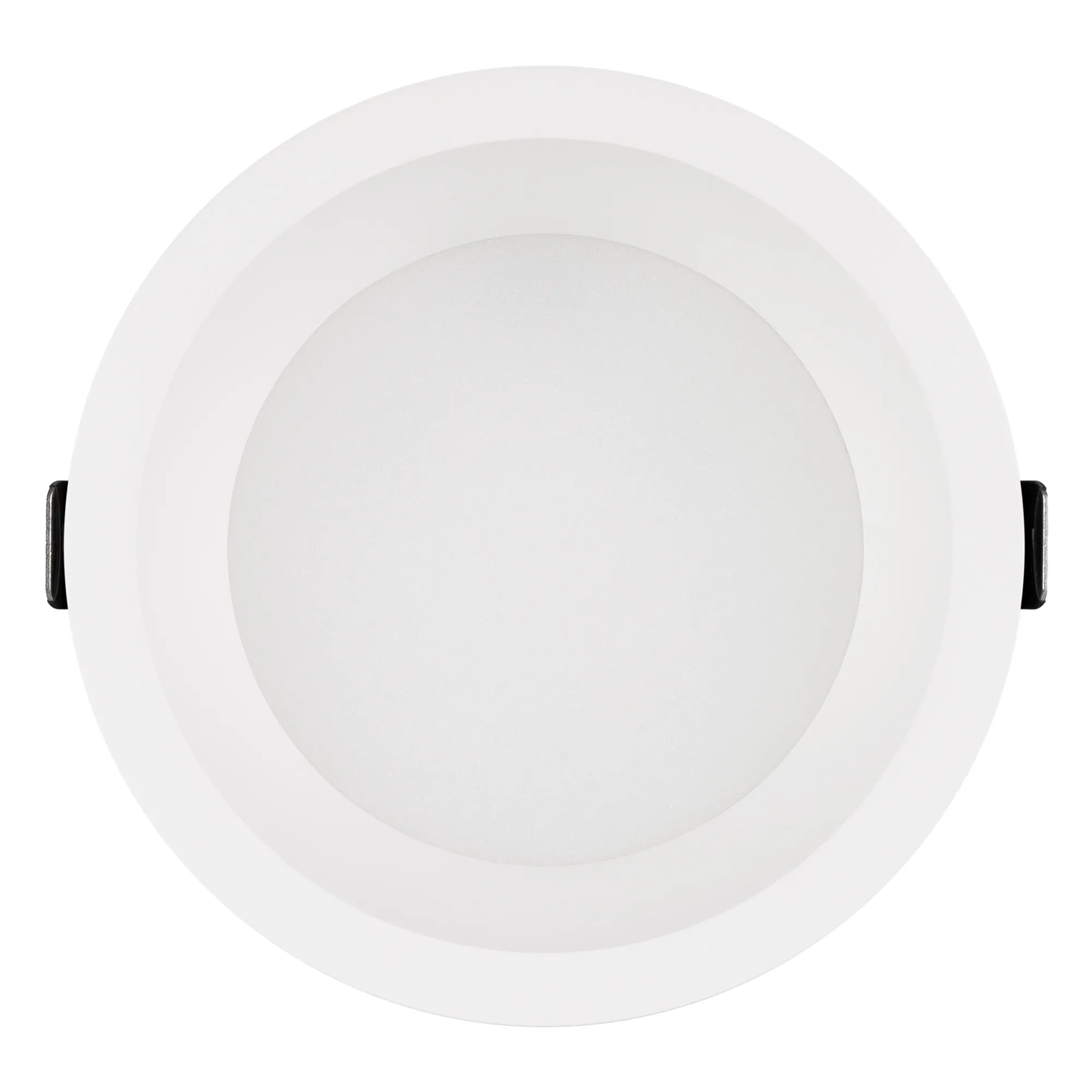 Встраиваемый светильник даунлайт. Мощность 30 Вт, св. поток 2845 лм, 95 лм/Вт, тёплый 3000 K, CRI>90, угол 90°, напряжение питания 230 В. Белый круглый корпус из алюминия, степень защиты IP54. Размер: диаметр 158 мм, высота 72 мм. Монтаж встраиваемый, установочное отверстие: диаметр 145 мм. Драйвер IP54, 27-43 В, 800 мА, пульсация <2%.