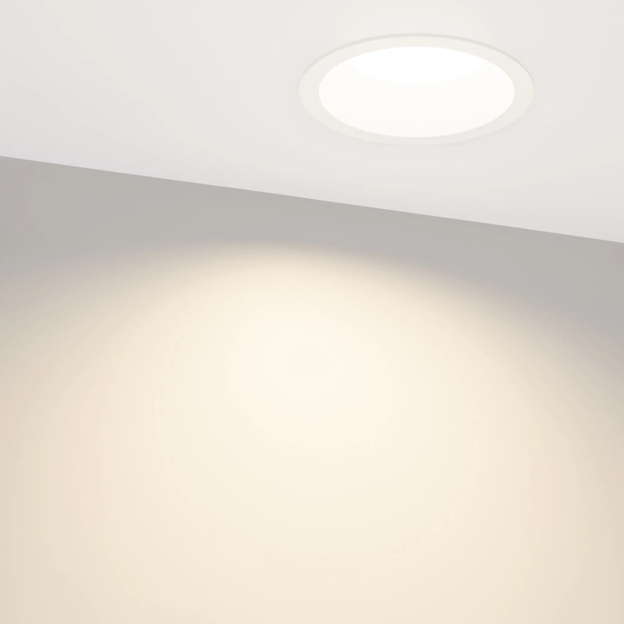 Встраиваемый светильник даунлайт. Мощность 24 Вт, св. поток 2190 лм, 91 лм/Вт, дневной 4000 K, CRI>90, угол 90°, напряжение питания 230 В. Белый круглый корпус из алюминия, степень защиты IP54. Размер: диаметр 137 мм, высота 66 мм. Монтаж встраиваемый, установочное отверстие: диаметр 125 мм. Драйвер IP54, 27-45 В, 600 мА, пульсация <2%.