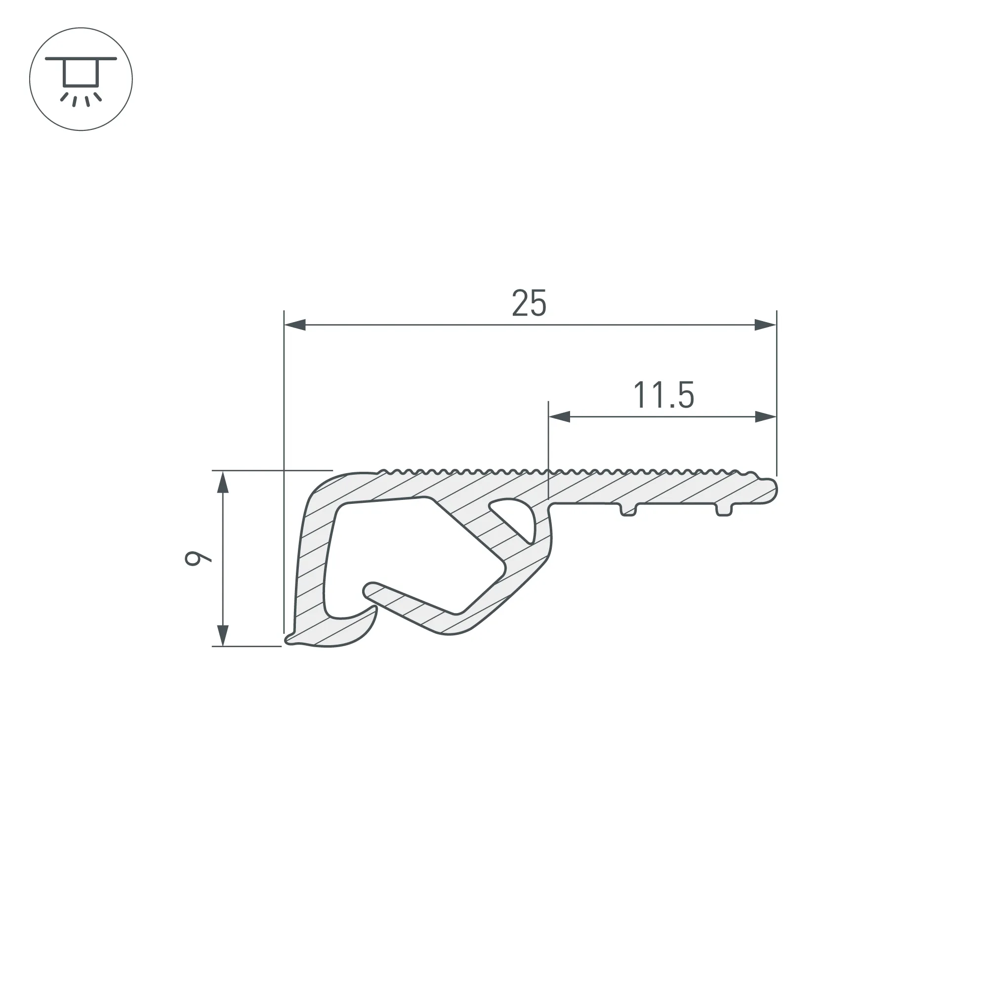 Потолочный ПВХ-профиль "Прищепка" для монтажа тканевых натяжных потолков. Габаритные размеры (L×W×H): 2600x25x9мм. Цена за 1 шт. 2.6 м.