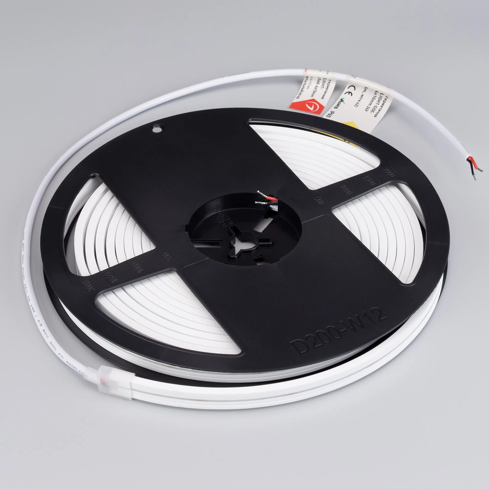 Гибкая герметичная лента (неон серии MOONLIGHT), сечение 4×10 мм. Светодиоды SMD 2835 168 шт/м. Цвет свечения ТЁПЛЫЙ БЕЛЫЙ (3000 К), индекс цветопередачи CRI>90, световой поток 240 лм/м, угол излучения 110°. Мощность 7.2 Вт/м, питание 24 В. Класс пылевлагозащиты IP65. Размеры 5000×10×4 мм. Мин. отрезок 41.66 мм. Горизонтальный изгиб SIDE, минимальный радиус изгиба 30 мм. Вывод кабеля с двух сторон. Катушка 5 м. Цена за 1 м. Гарантия 3 года.