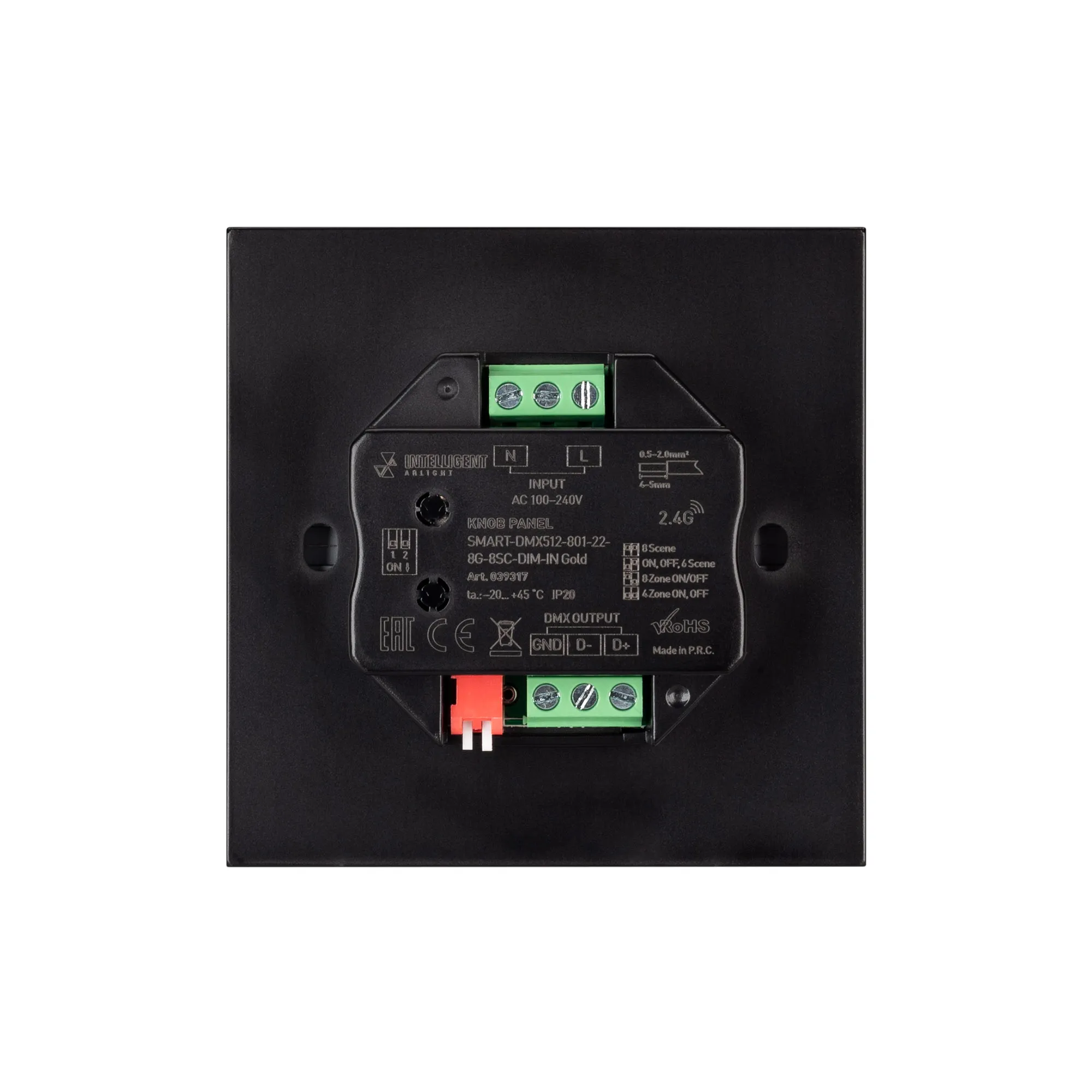 Настенная встраиваемая кнопочная панель 2.4 ГГц, цвет золотой. Материал - пластик. Для управления одноцветными источниками света (ШИМ) с помощью кнопок, 8 зон/8 сцен управления (режим зона/сцена устанавливается dip-переключателем). Питание/рабочее напряжение AC 100-240V. Функция управления DMX512 устройствами. Габариты 86х86х35.5 мм. Панель совместима с контроллерами и пультами серии SMART.
