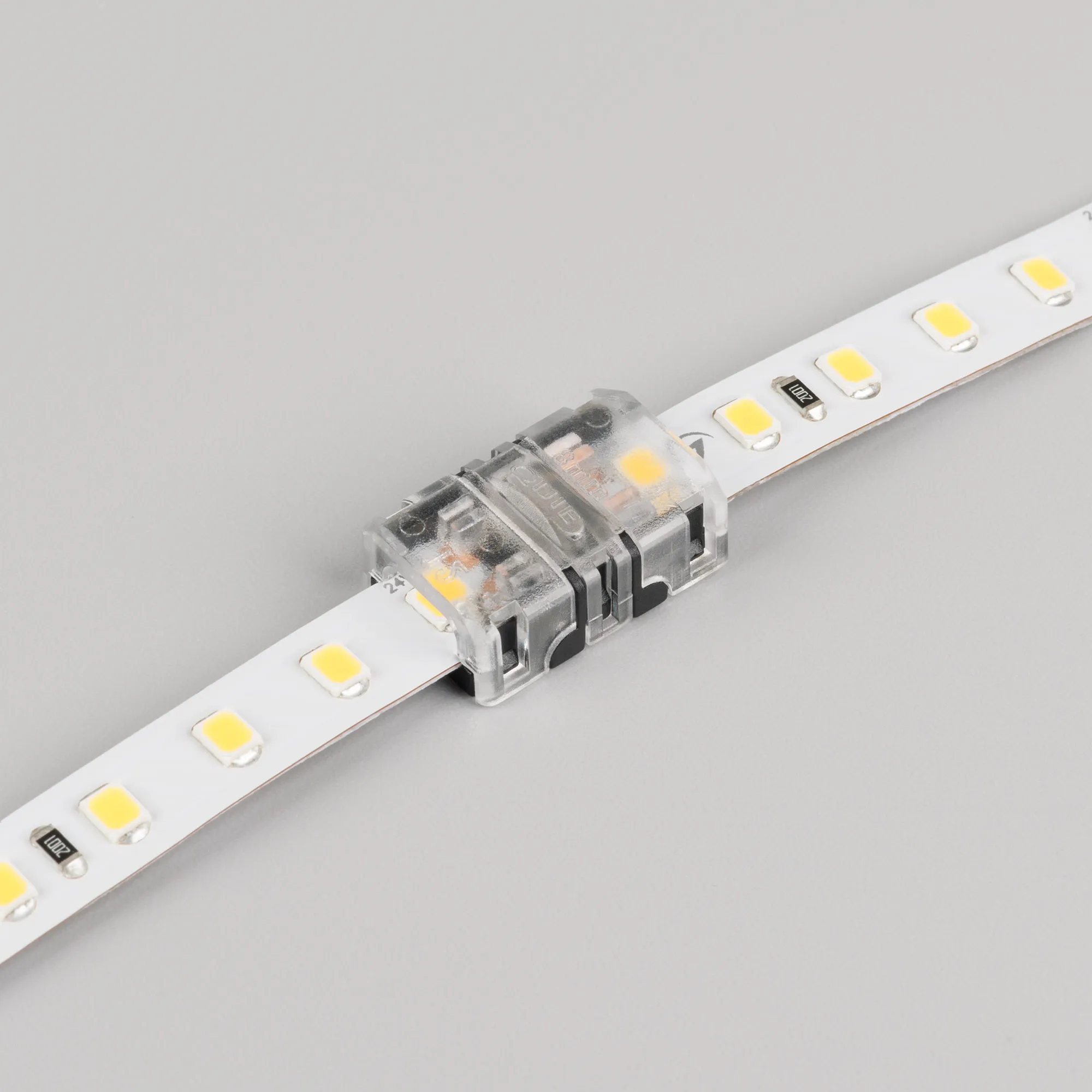 Одиночный коннектор для соединения 2-х отрезков открытых IP20 светодиодных одноцветных лент шириной 8 мм с высокой плотностью светодиодов. Материал - прозрачный пластик. Обеспечивает соединение без видимых разрывов. Максимальный допустимый ток 3 А, напряжение 3-24 В. Цена за 1шт.