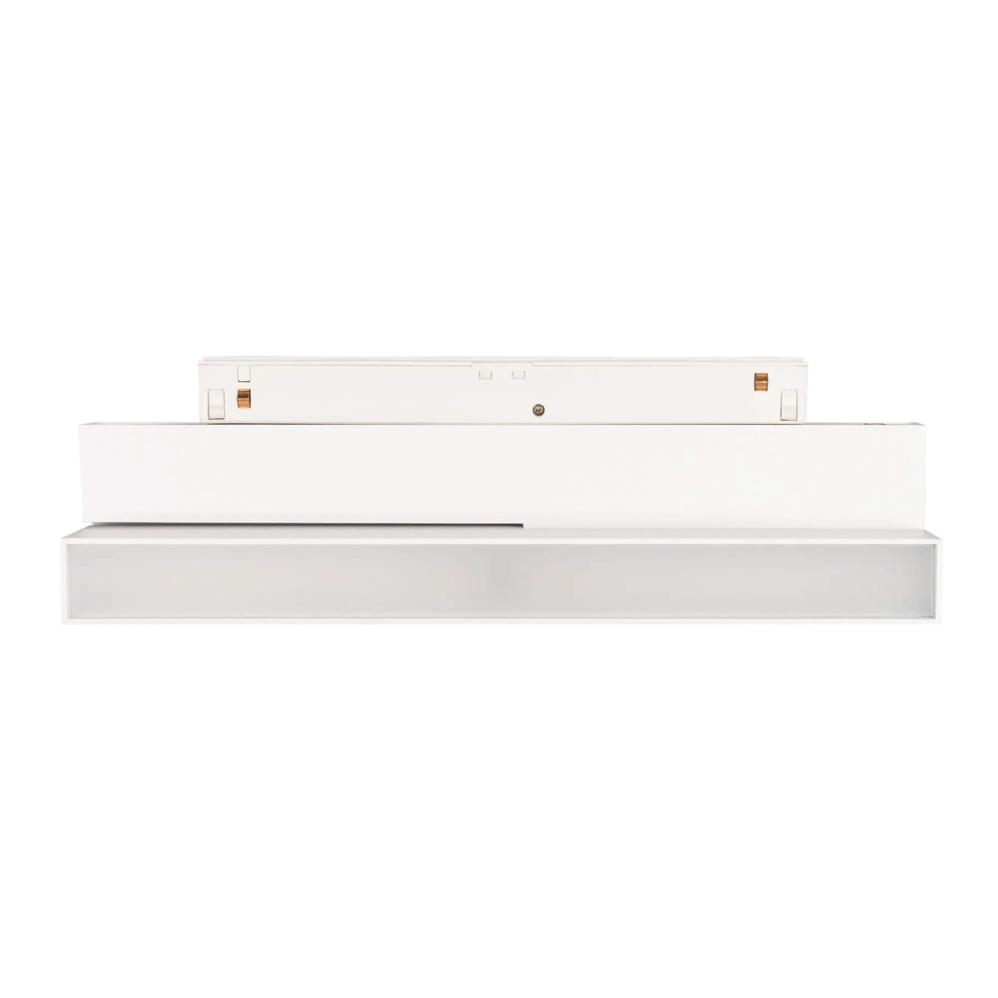 Светильник для магнитных треков MAG-ORIENT шириной 26 мм с управлением DALI. Мощность 12 Вт, св. поток 750 лм, 60 лм/Вт, теплый 3000 K, CRI>90, угол 80°, напряжение питания 48 В. Белый прямоугольный корпус из металл, экран поликарбонат, степень защиты IP20. Размер: длина 232 мм, ширина 23 мм, высота 99 мм. Монтаж на трек MAG-ORIENT. Пульсация <1%.