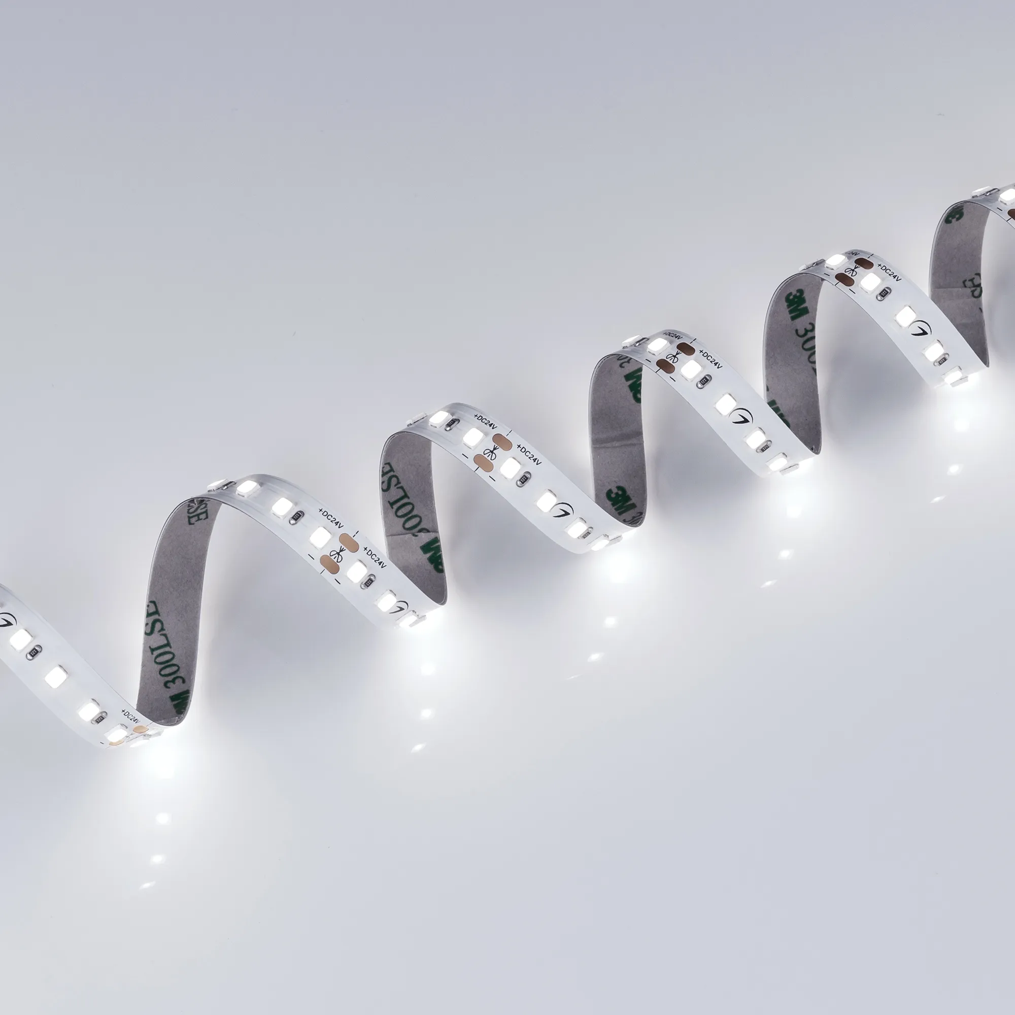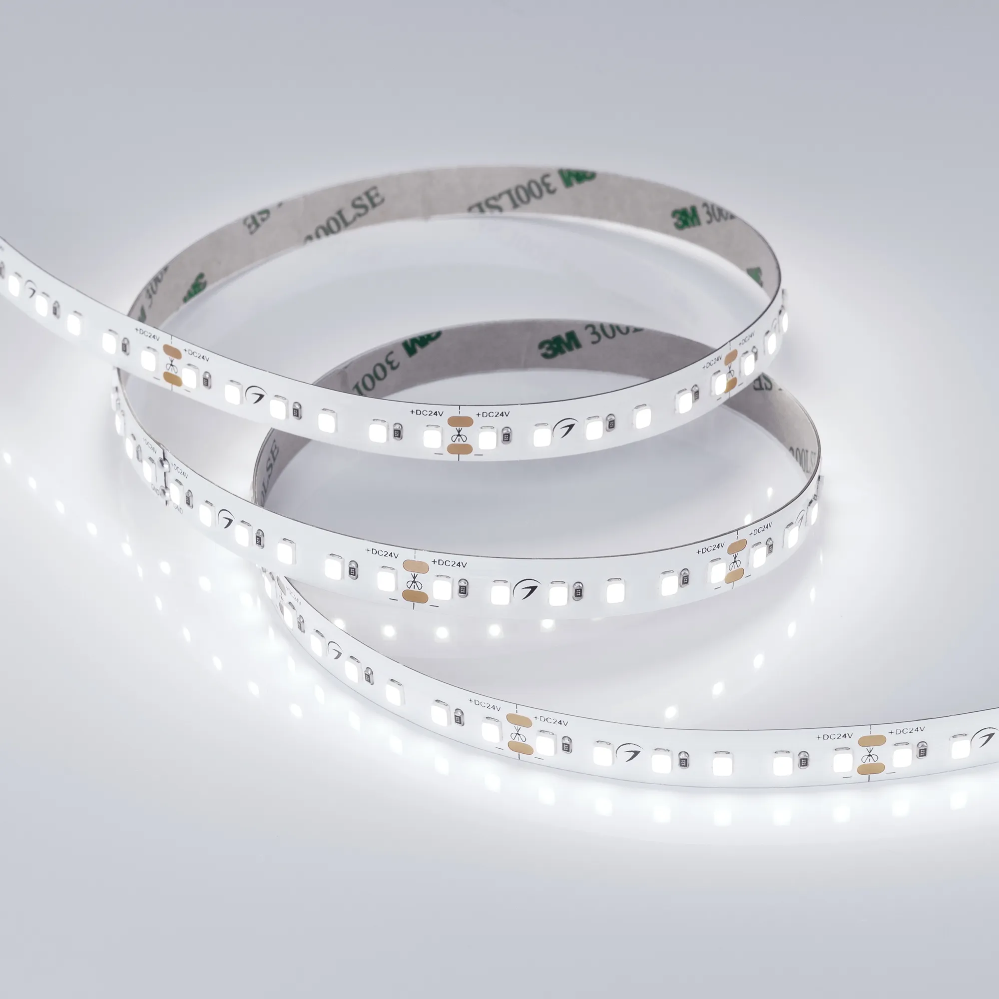 Гибкая лента повышенной прочности TWIST , светодиоды smd 2835,120шт/м (600шт на 5м), белая плата 10мм, скотч 3М. Цвет БЕЛЫЙ 5800-6500K. Питание 24V, мощность 10 Вт/м (50 Вт на 5м), угол 120°, цветопередача CRI>90. Размеры 5000х10x1.5мм. Мин.отрезок 50мм, 6шт светодиодов. Пакет 5м. Цена за 1м.