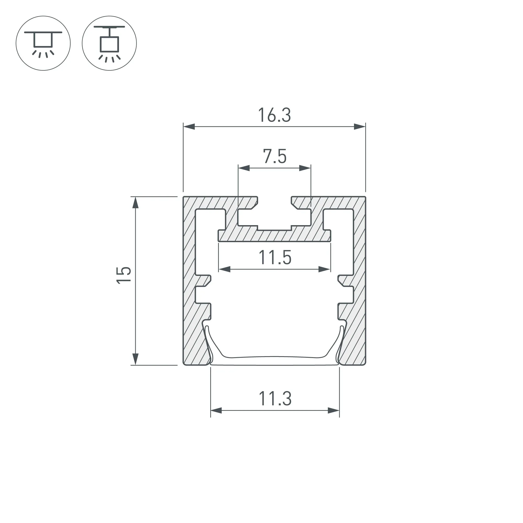 Алюминиевый анодированный профиль для светодиодных лент и линеек. Совместим с профилем 035014. Габаритные размеры (L×W×H): 2000x16,3x15 мм. Ширина площадки для ленты 11,5 мм. Экраны, заглушки и другие аксессуары приобретаются отдельно. Цена за 1 метр.