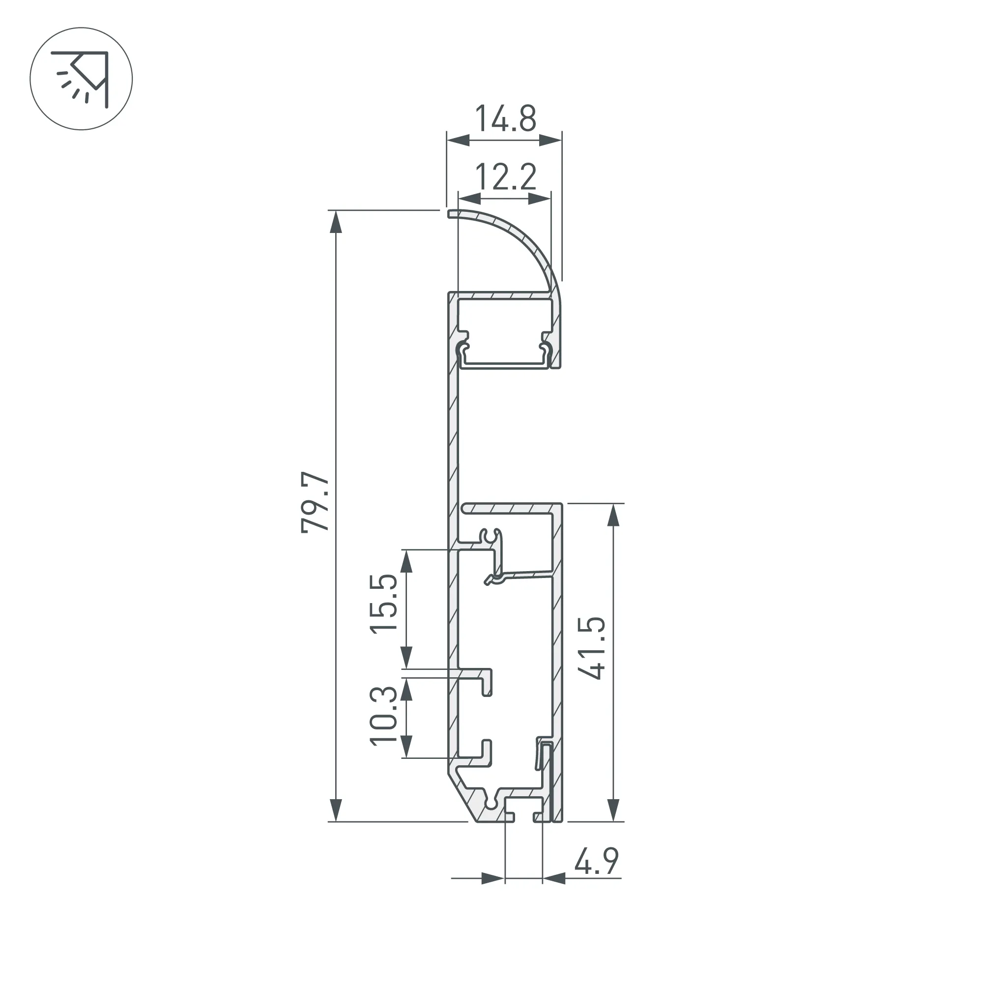 Алюминиевый анодированный накладной двухкомпонентный профиль-плинтус для светодиодных лент и линеек. Габаритные размеры (L×W×H): 2000x14,8x79,7 мм. Ширина площадки для ленты 12,2 мм. Аксессуары приобретаются отдельно. Цена за метр.