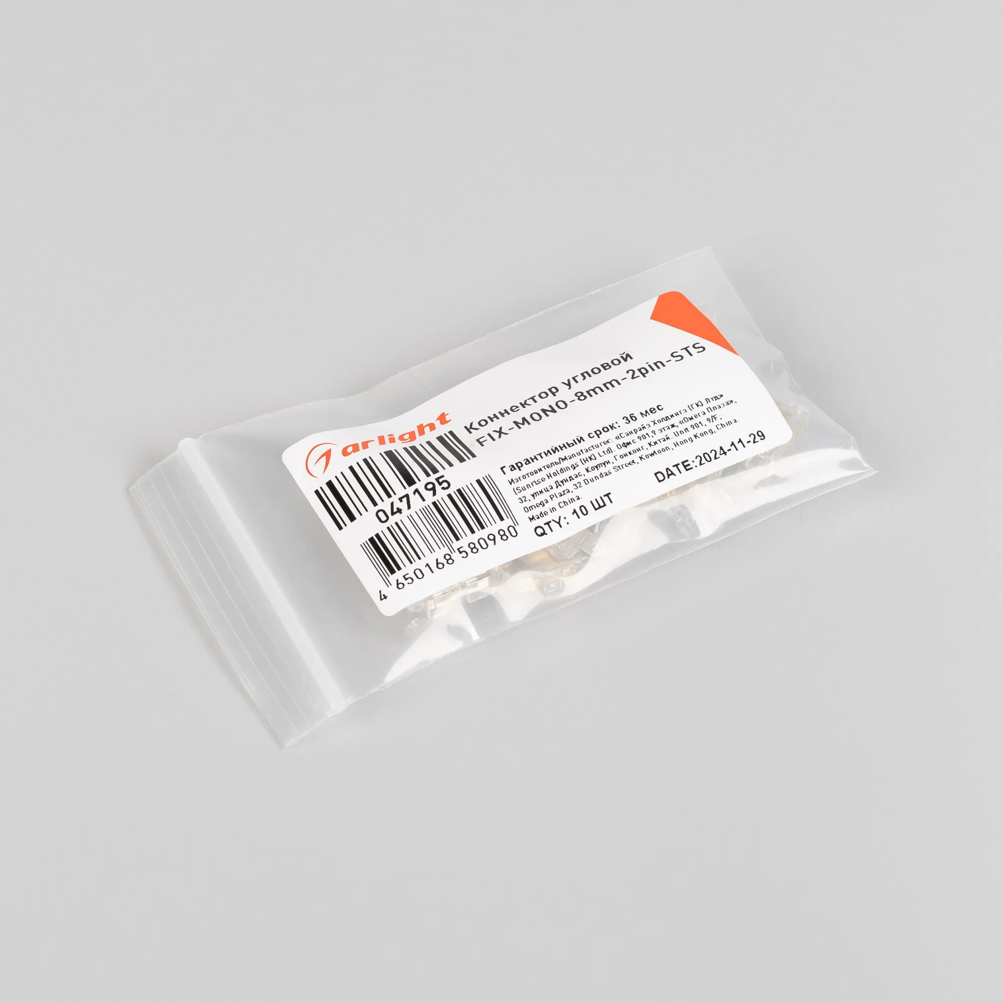 Коннектор угловой FIX-MONO-8mm-2pin-STS (Arlight, Прозрачный)