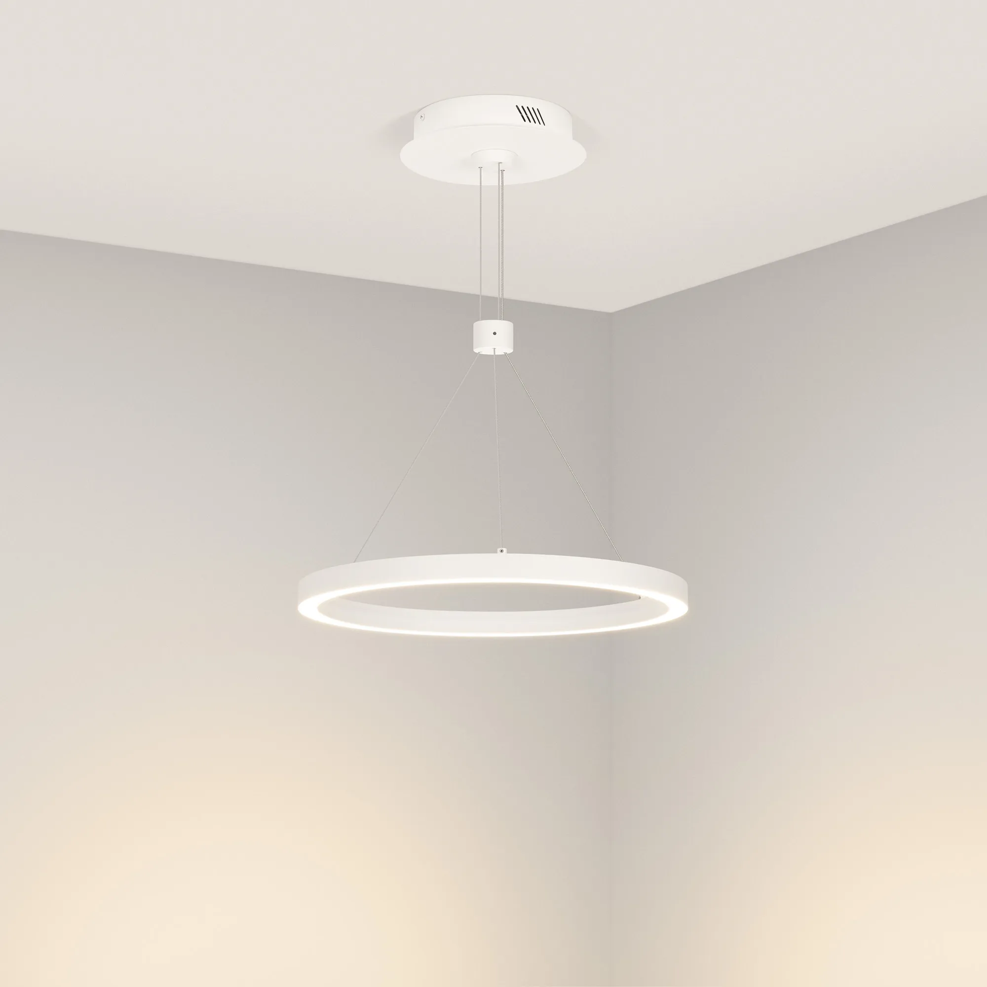 Подвесной светильник. Мощность 24 Вт, св. поток 1380 лм, 58 лм/Вт, дневной 4000 K, CRI>90, угол 120°, напряжение питания 230 В. Белый круглый корпус из алюминия, экран силикон, степень защиты IP20. Размер: диаметр 400 мм, высота 25 мм, ширина профиля 25 мм, размер чаши: диаметр 170 мм, высота 40 мм. Монтаж подвесной, длина подвеса 1200мм. Драйвер 33-40 В, 600 мА Пульсация <5%.