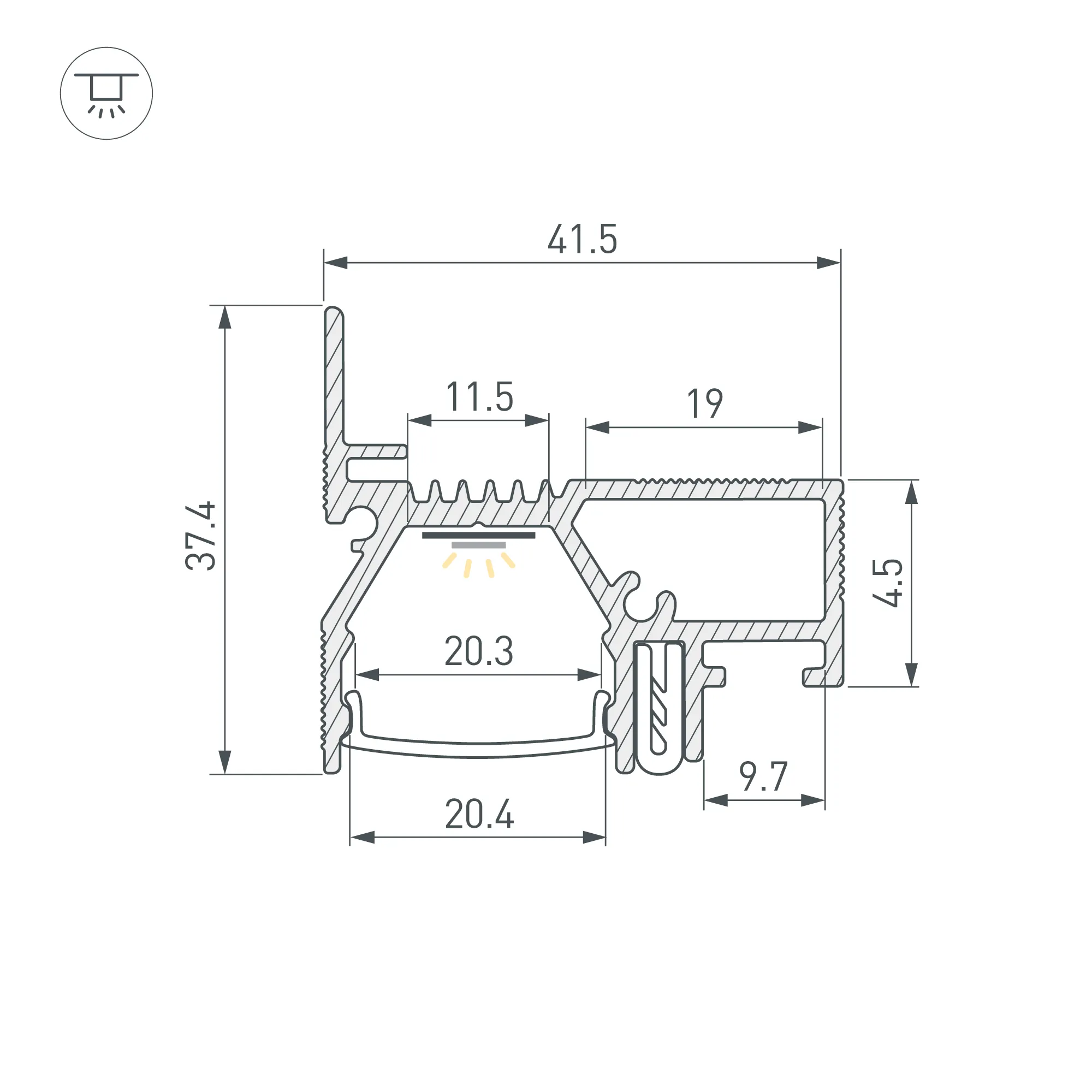 Алюминиевый профиль SLOTT for ARLIGHT для монтажа натяжных потолков (контурная подсветка). Самонесущая конструкция для крепления натяжного потолка с пазом для установки светодиодной ленты. Для создания световых линий в натяжных потолках. Возможность установки до 3х лент. Демпферная система крепления натяжного потолка. Цвет - черный RAL9005 (порошковая окраска). Ширина площадки для ленты 11,5 мм. Есть две дополнительные площадки по 10 мм. Длина 2000 мм. Цена за 1 м.