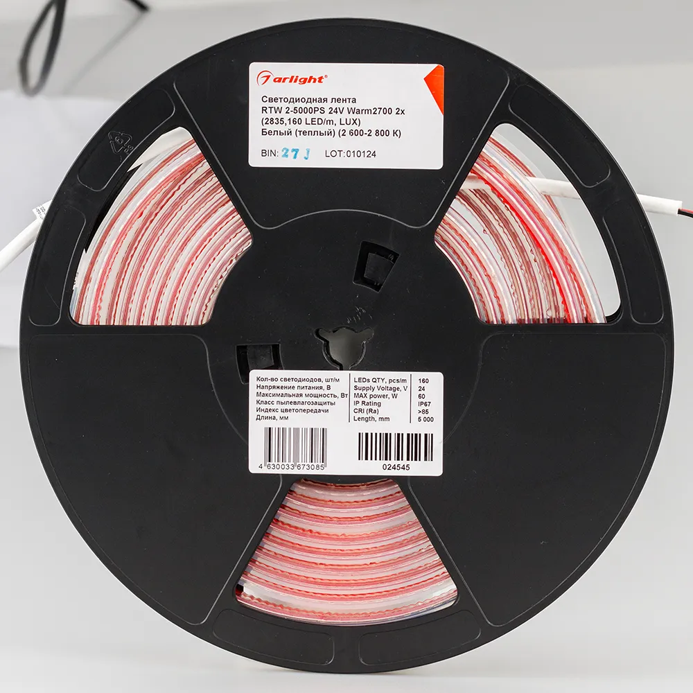 В магазине Arled Market Вы можете купить "Лента светодиодная RTW 2-5000PS 24V Warm2700 2x (2835, 160 LED/m, LUX) (Arlight, 12 Вт/м, IP67)"