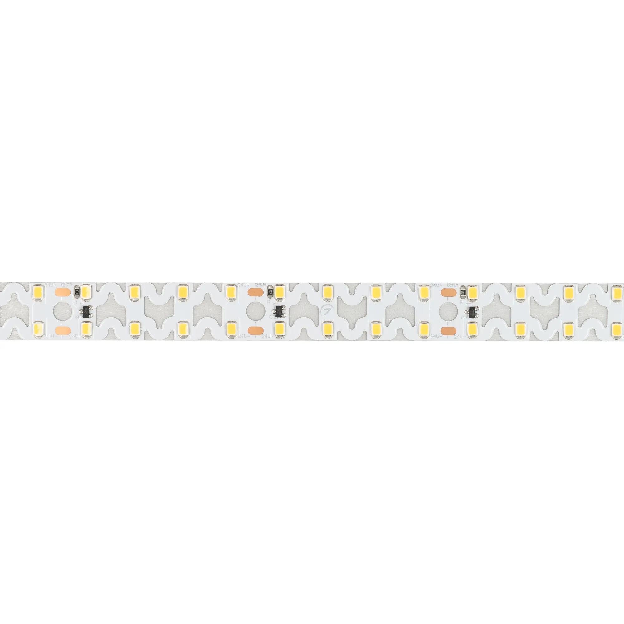 Гибкая светодиодная лента RZ серии A160 с фигурной платой в форме волны. Светодиоды SMD 2835, 160 шт/м, белая плата шириной 15 мм, скотч 3М. Цвет ТЕПЛЫЙ 2700K, индекс цветопередачи CRI>85, угол 120°. Питание 24 В, мощность 19.2 Вт/м (96 Вт на 5 м). Размеры 5000х15х1.5 мм. Мин. отрезок 50 мм, 8 светодиодов. Цена за 1 м.