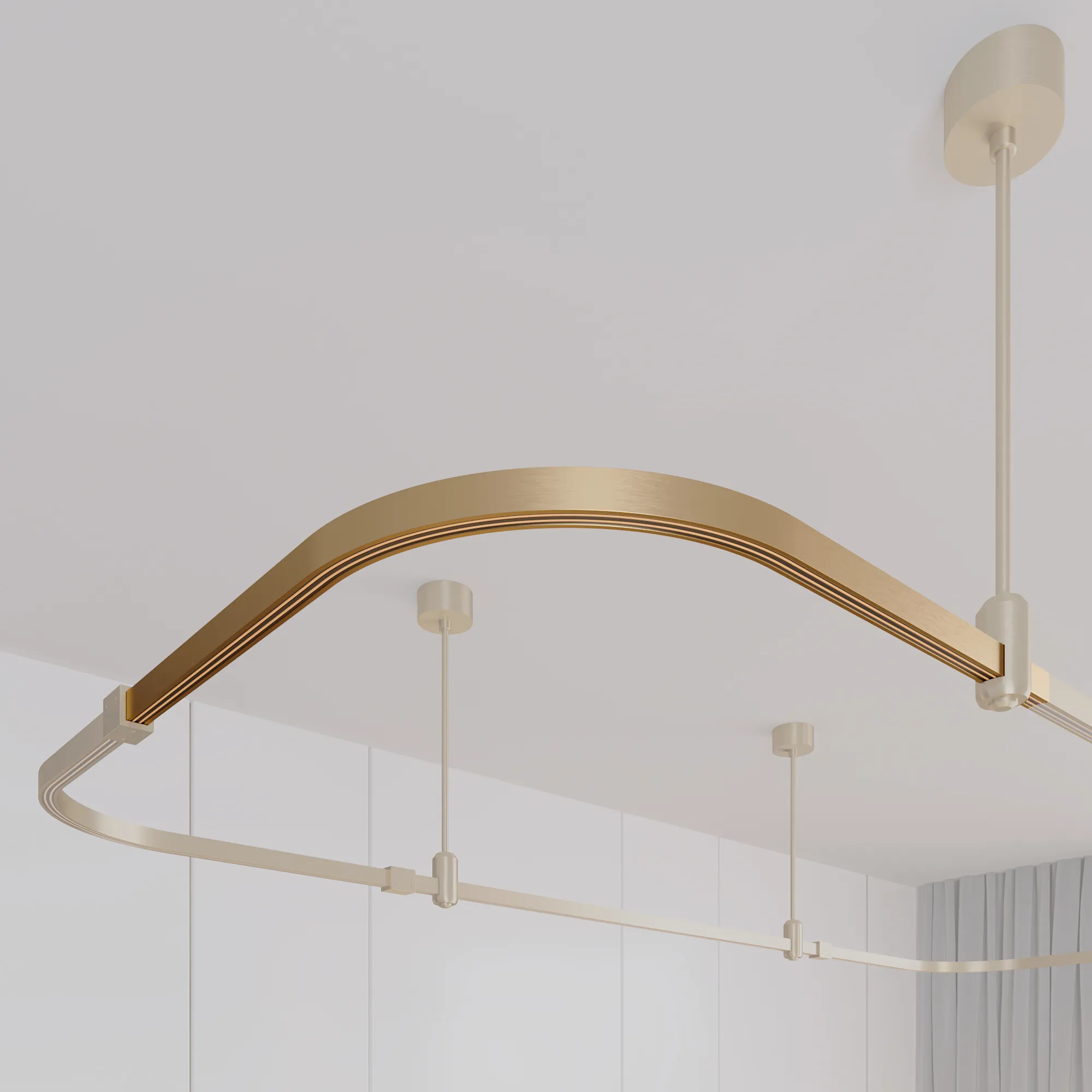Подвесной угловой трек APRIORI, DC48V. Материал алюминий, цвет светлое золото. Размер ДxШxВ: 500x500x22мм. Подвесы, коннекторы, светильники и источники питания приобретаются отдельно.