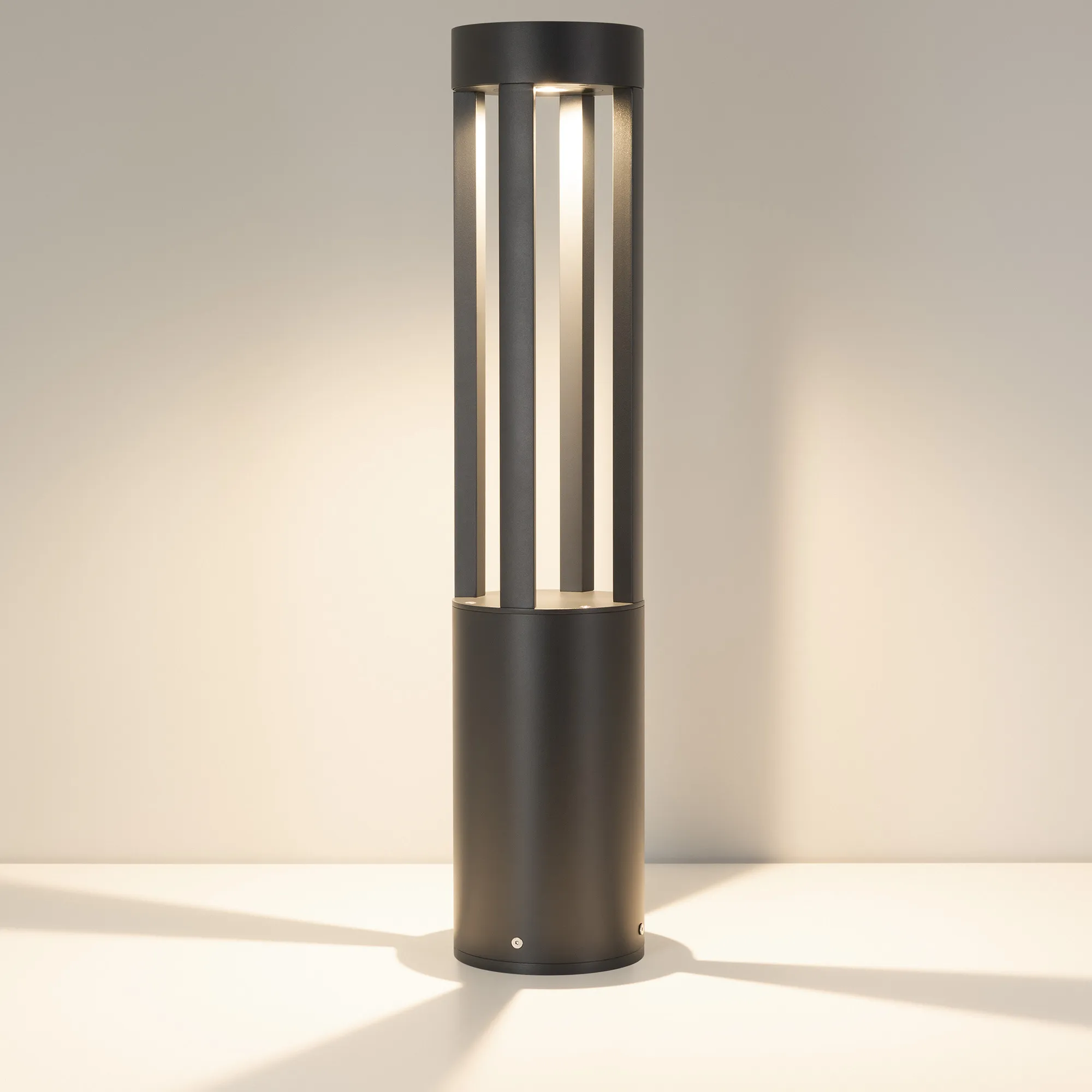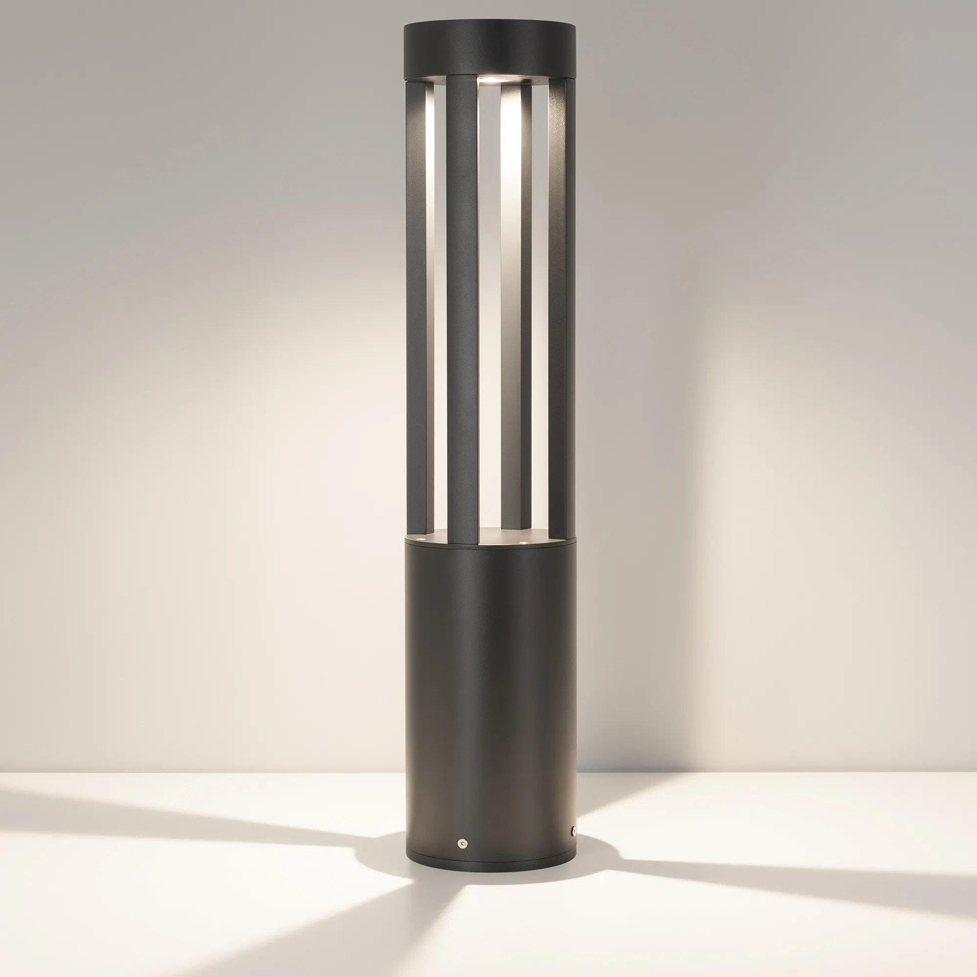 Уличный светодиодный светильник для подсветки дорожек с изменяемой цветовой температурой. Мощность 20 Вт, св. поток 1200-1400 лм, 60-70 лм/Вт, теплый 3000 K, теплый 3500 K, дневной 4000K, CRI>80, угол 80°, напряжение питания 230 В. Темно-серый круглый корпус из алюминия RAL 7016, экран из закаленного стекла, степень защиты IP65. Размер: диаметр 160 мм, высота 1200 мм. Монтаж накладной, комплект крепежа поставляется со светильником. Драйвер 27-40 В, 500 мА, пульсация <1%.