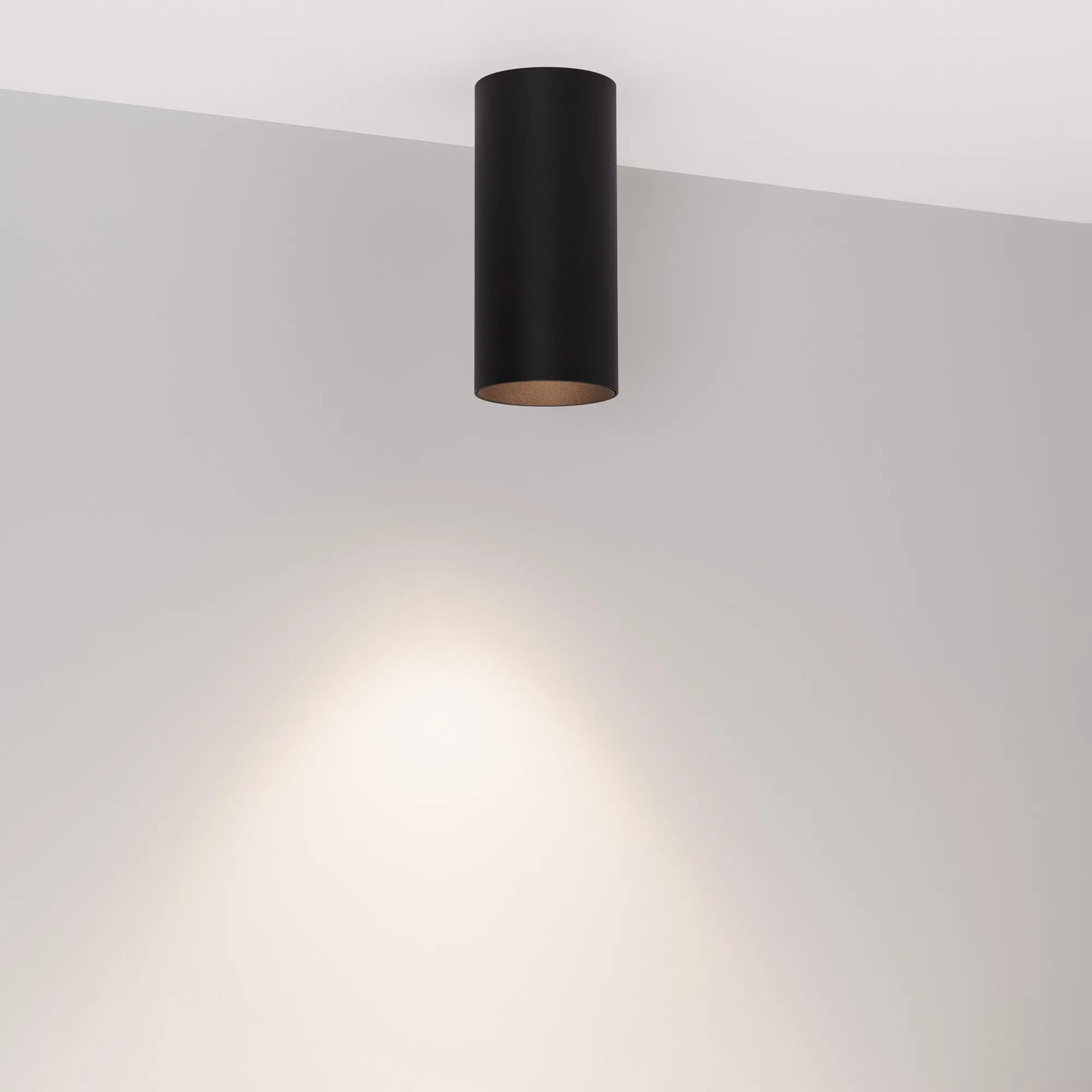 Накладной светильник. Мощность 9 Вт, св. поток 650 лм, 72 лм/Вт, дневной 4000 K, CRI>90, угол 36°, напряжение питания 230 В. Чёрный круглый корпус из алюминия, экран PMMA, степень защиты IP40. Размер: диаметр 50 мм, высота 110 мм. Монтаж накладной. Встроенный драйвер 27-40 В, 200 мА, пульсация <1 %.