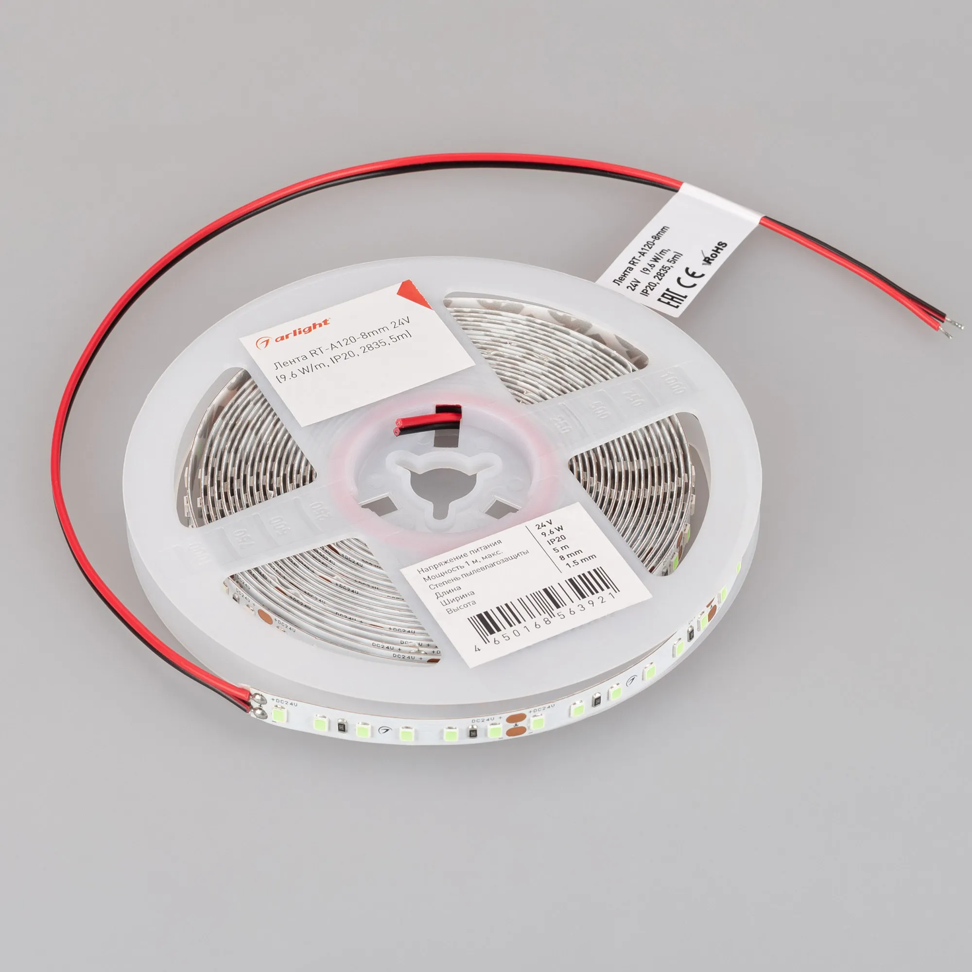 В магазине Arled Market Вы можете купить "Лента светодиодная RT-A120-8mm 24V Tiffany (9.6 W/m, IP20, 2835, 5m) (Arlight, -)"