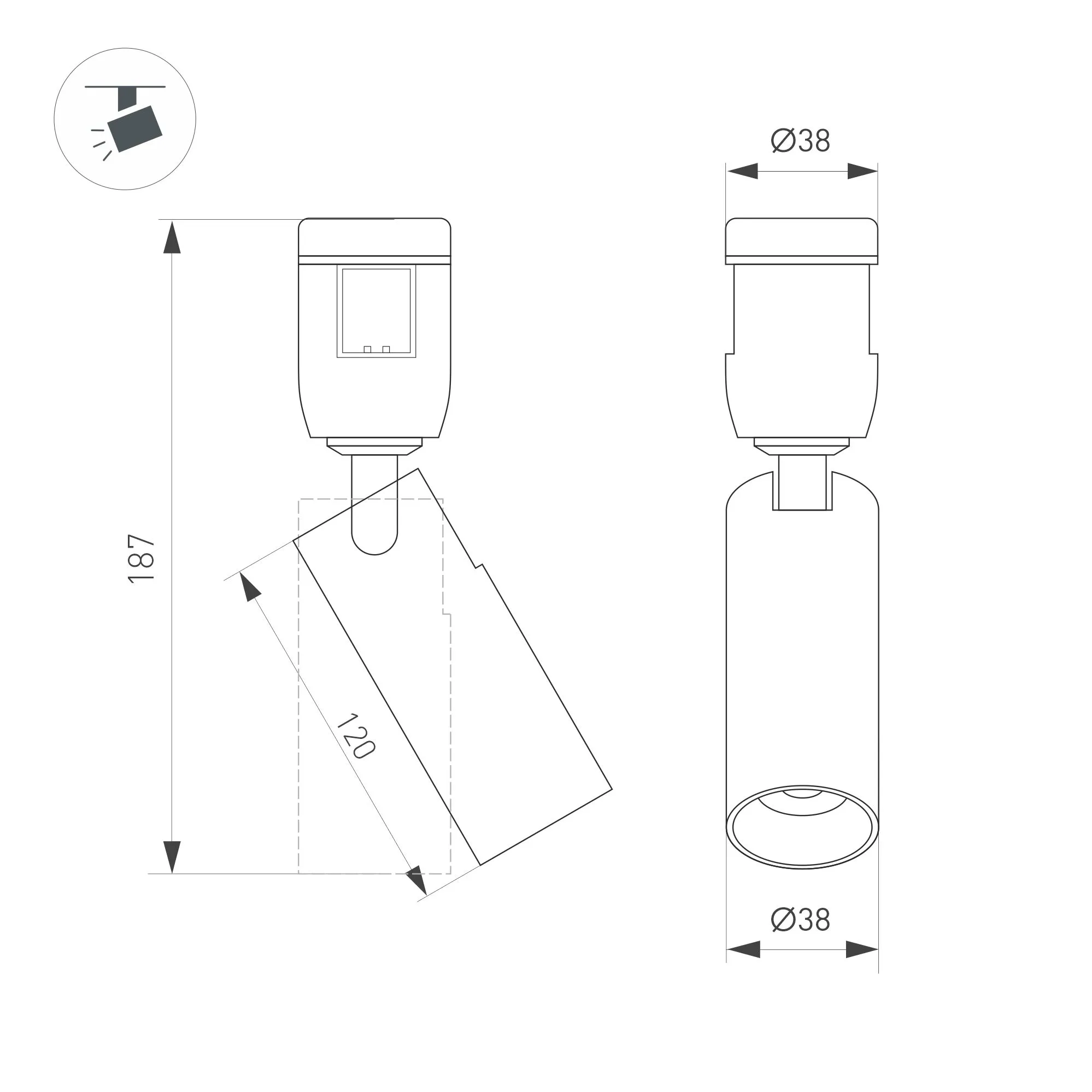 Светильник ART-APRIORI-SPOT-TURN-R38-8W Day4000 (GD, 36 deg, 48V) (Arlight, IP20 Металл, 3 года)
