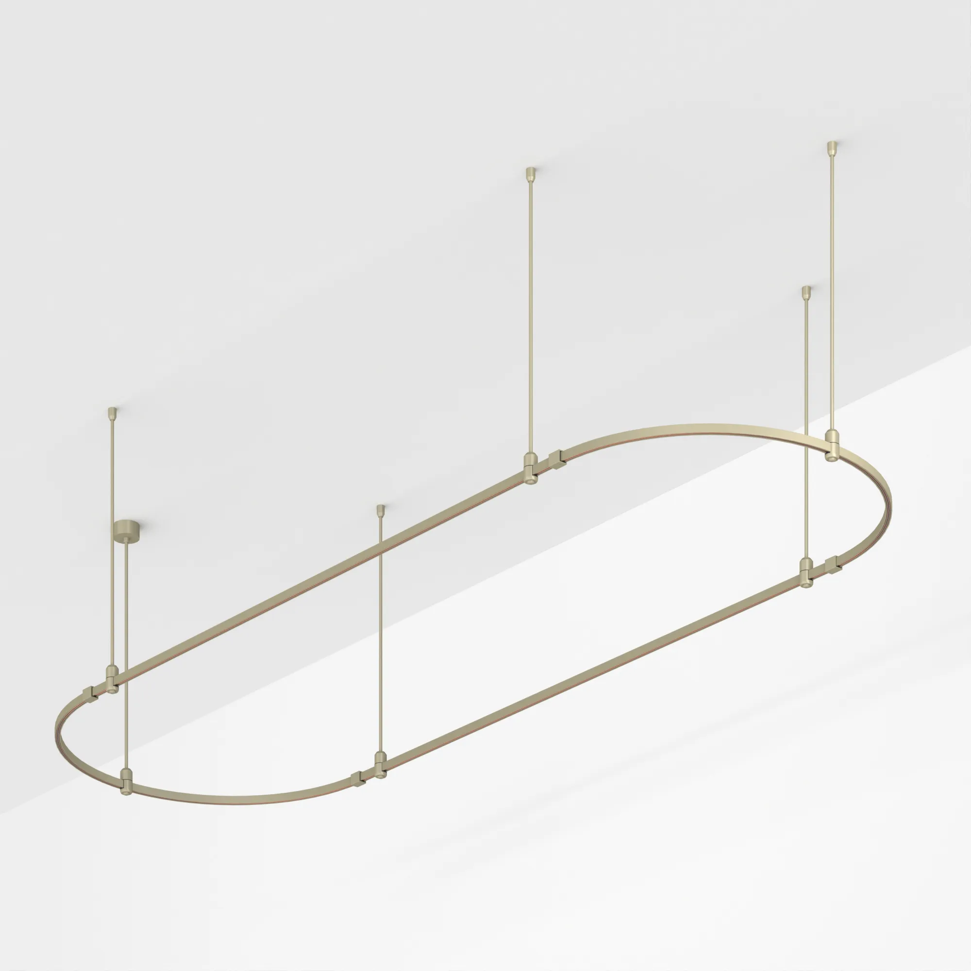 Подвесная конструкция APRIORI, форма овал. В комплекте треки с аксессуарами и жесткими подвесами длиной 800мм. DC48V. Материал алюминий, цвет серо-оливковый. Размер ДxШxВ: 3000x1000x22мм. Светильники и источники питания приобретаются отдельно.