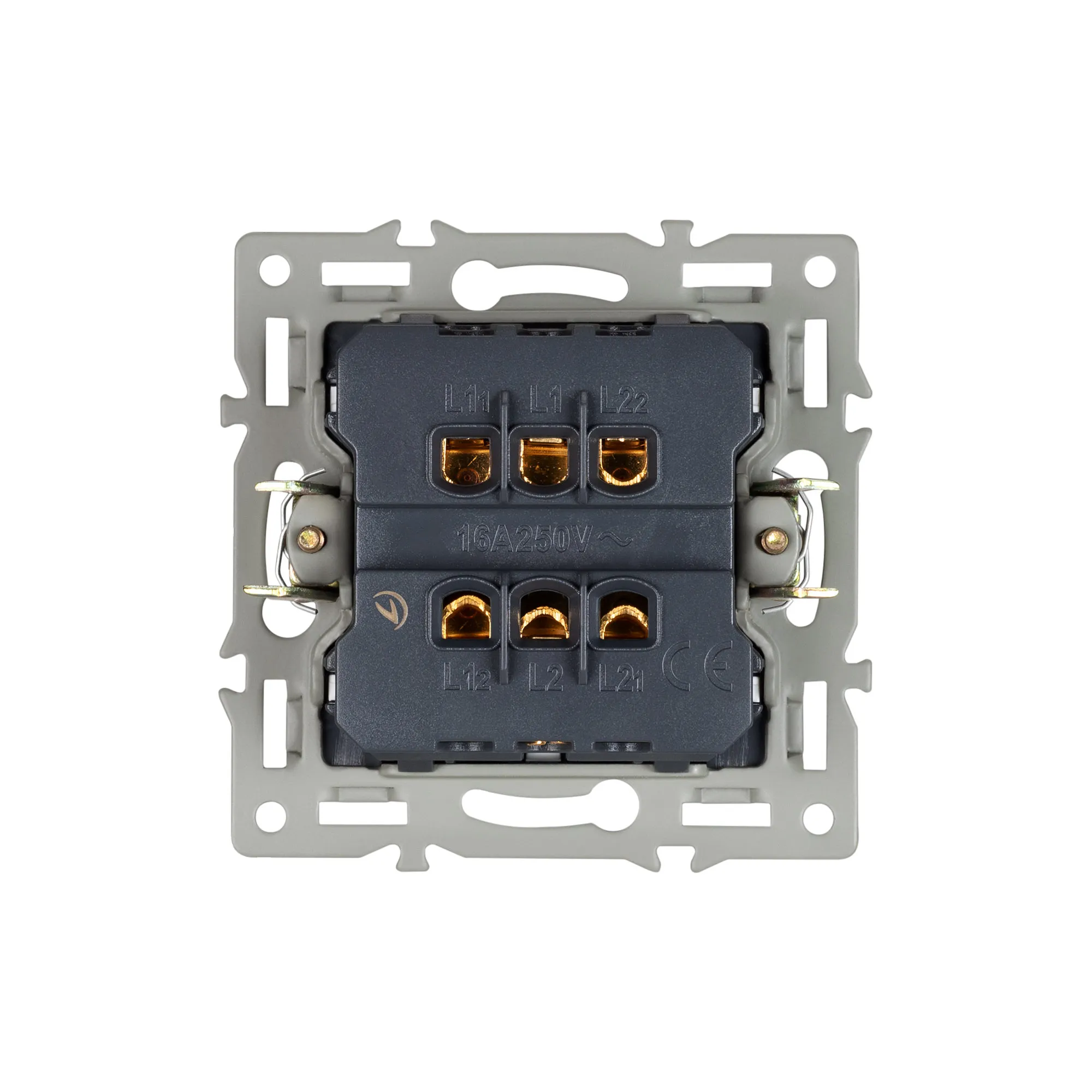 Механизм выключателя клавишный на 1 пост 2 клавиши (проходной), с суппортом из алюминия. Цвет - серый. Степень пылевлагозащиты - IP20.